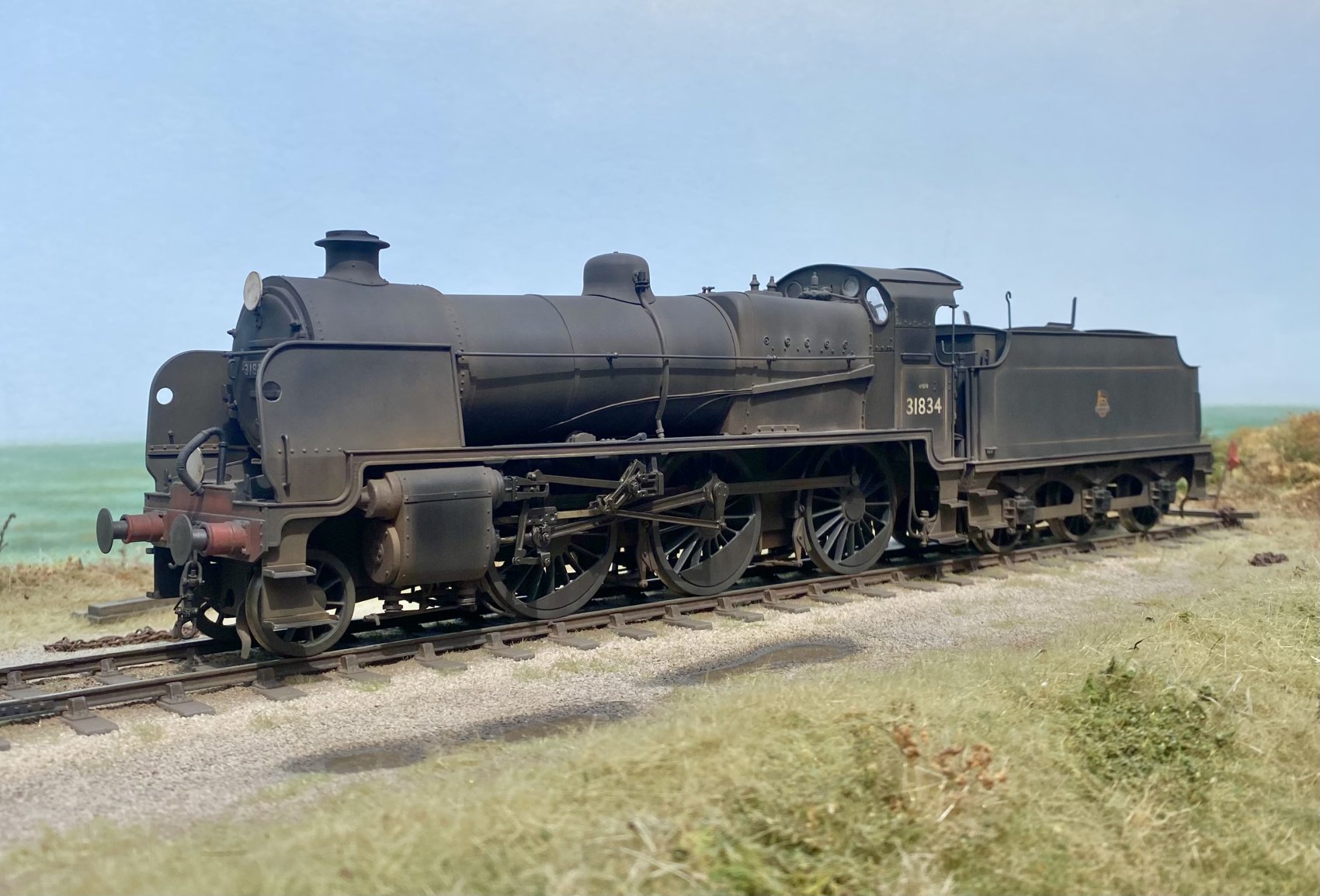 The turntable area is just about finished with the engine shed, coal staithes, crane, dry stone walling, sea foam trees and general landscaping.