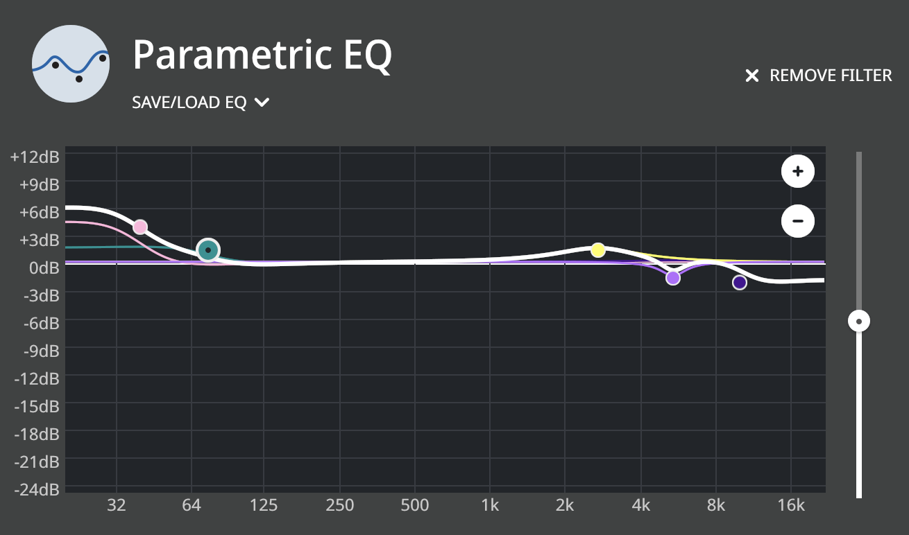 When you EQ headphones be careful with boosting frequencies too much as it can clip the preamp input. Looking at your graph I’d be tempted to drop the preamp input slider on the right so that the boosted frequencies are at 0db. You will get a drop in volume but just turn up your headphone amp. I suppose more noise might be introduced here but better that, than distortion.