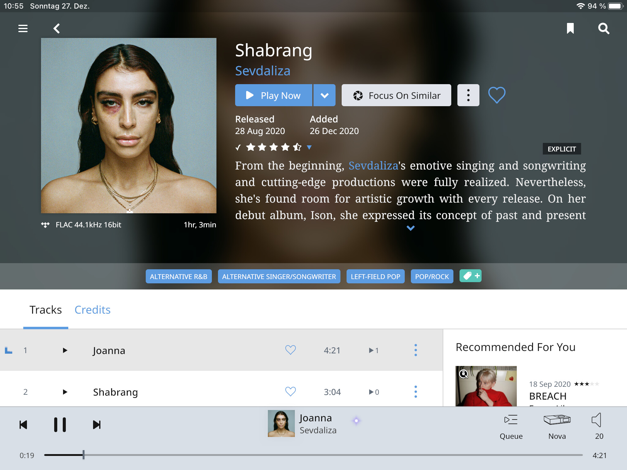 Just listening to Sevdalizas new album and thought it to be very well produced with a great sound stage in depth and width.