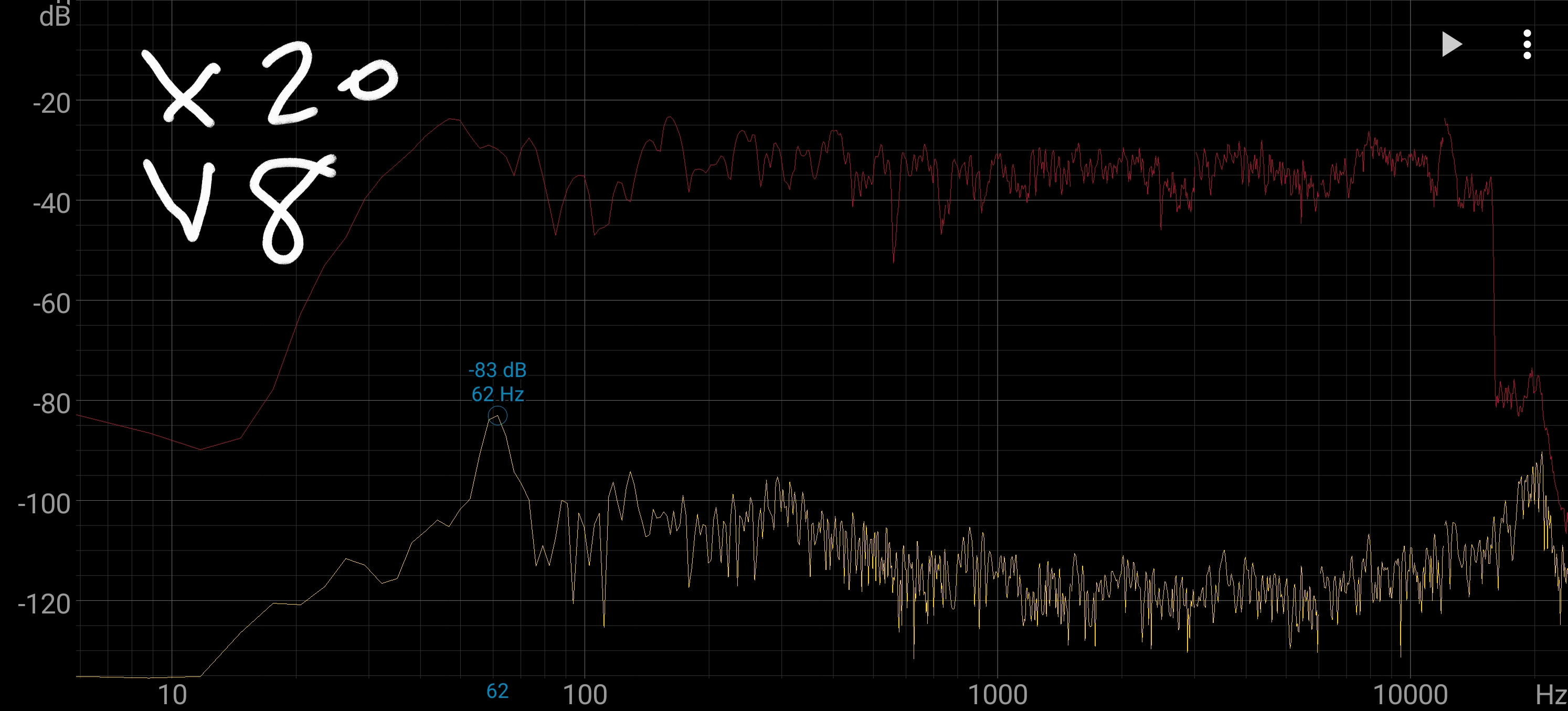 Ended with this, Volume 8 gives the similar volume as the main speakers. But it looks like there is still a dip at 100. I don’t think I should go any higher on the crossover… Any thoughts? Tried crossover from 6 - 20, it is not that sensitive. Probability each click is too subtle, given 40 clicks ranging from 30hz to 120hz. Each click only tuned about 2.25hz. So 20 clicks is about 75hz.