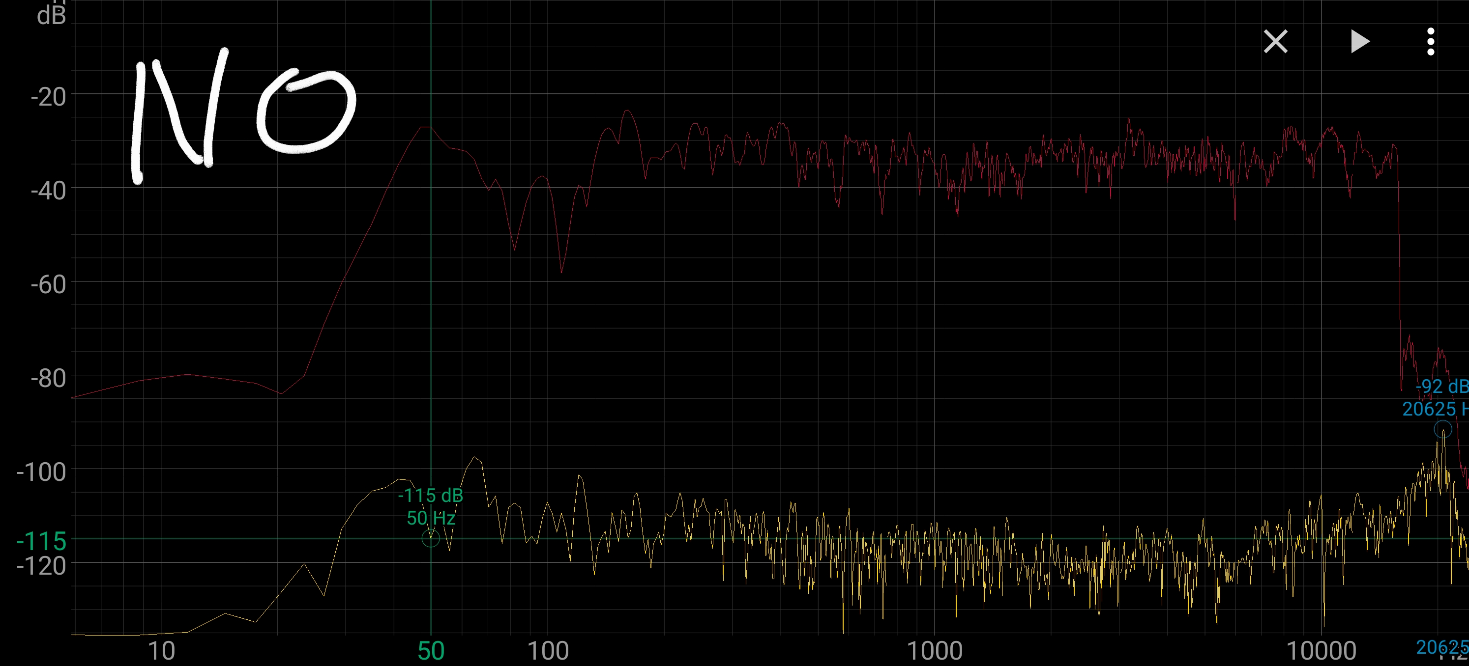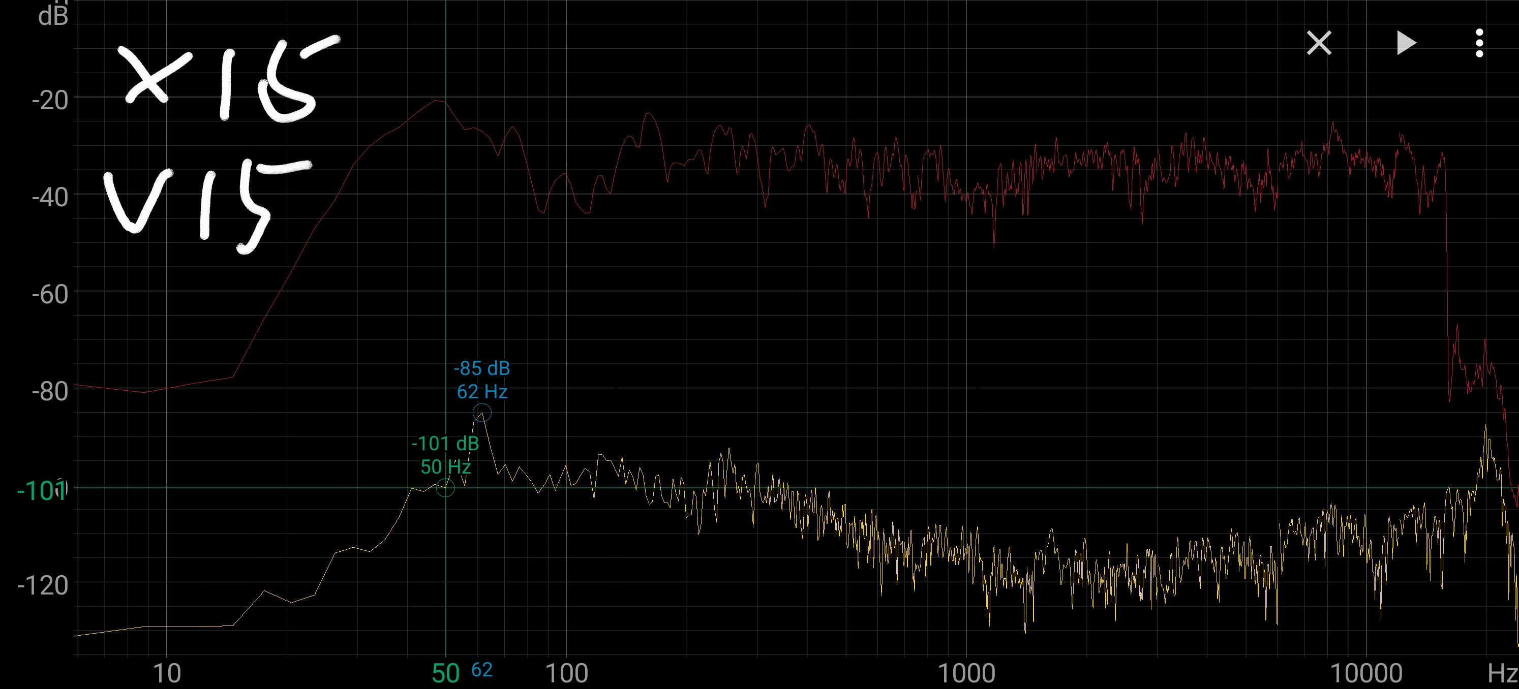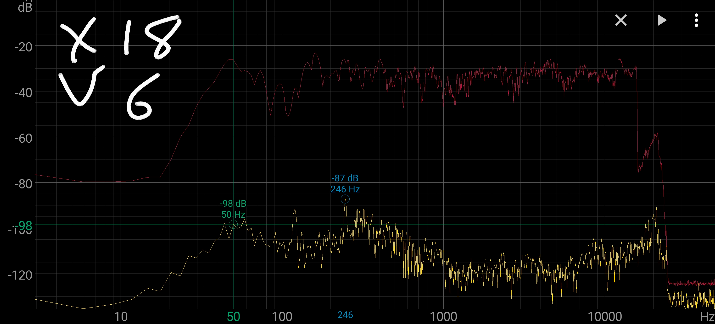 But what are the two traces, red and yellow? The two are very different in response, yellow in your latest post showing a marked lowering of response below about 800Hz apart from that distinct peak at 322Hz, while the red is better though rolling off markedly below about 50 Hz (though I’m not sure the app is reliable at the bottom end.