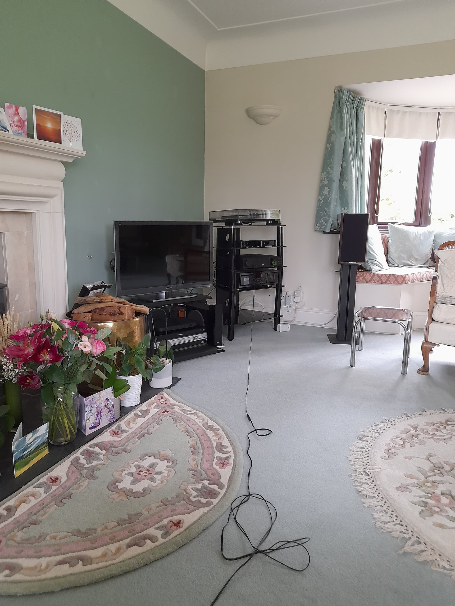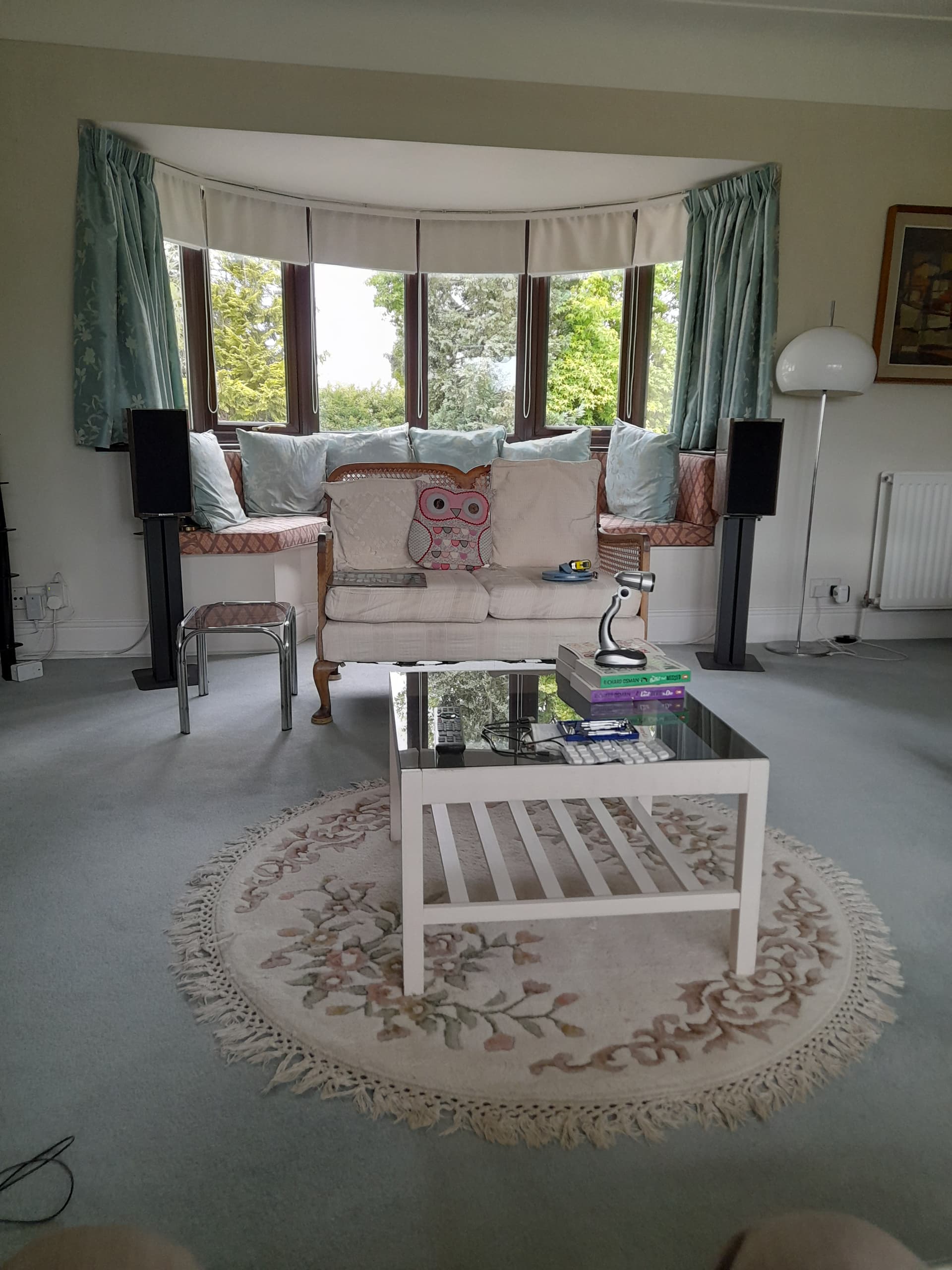 As Simon mentioned, I too was wondering what limits the current speaker location may be having - I’m not entirely sure from the curtains if there is solid wall behind them, but there is certainly a large void created by the bay window arrangement.