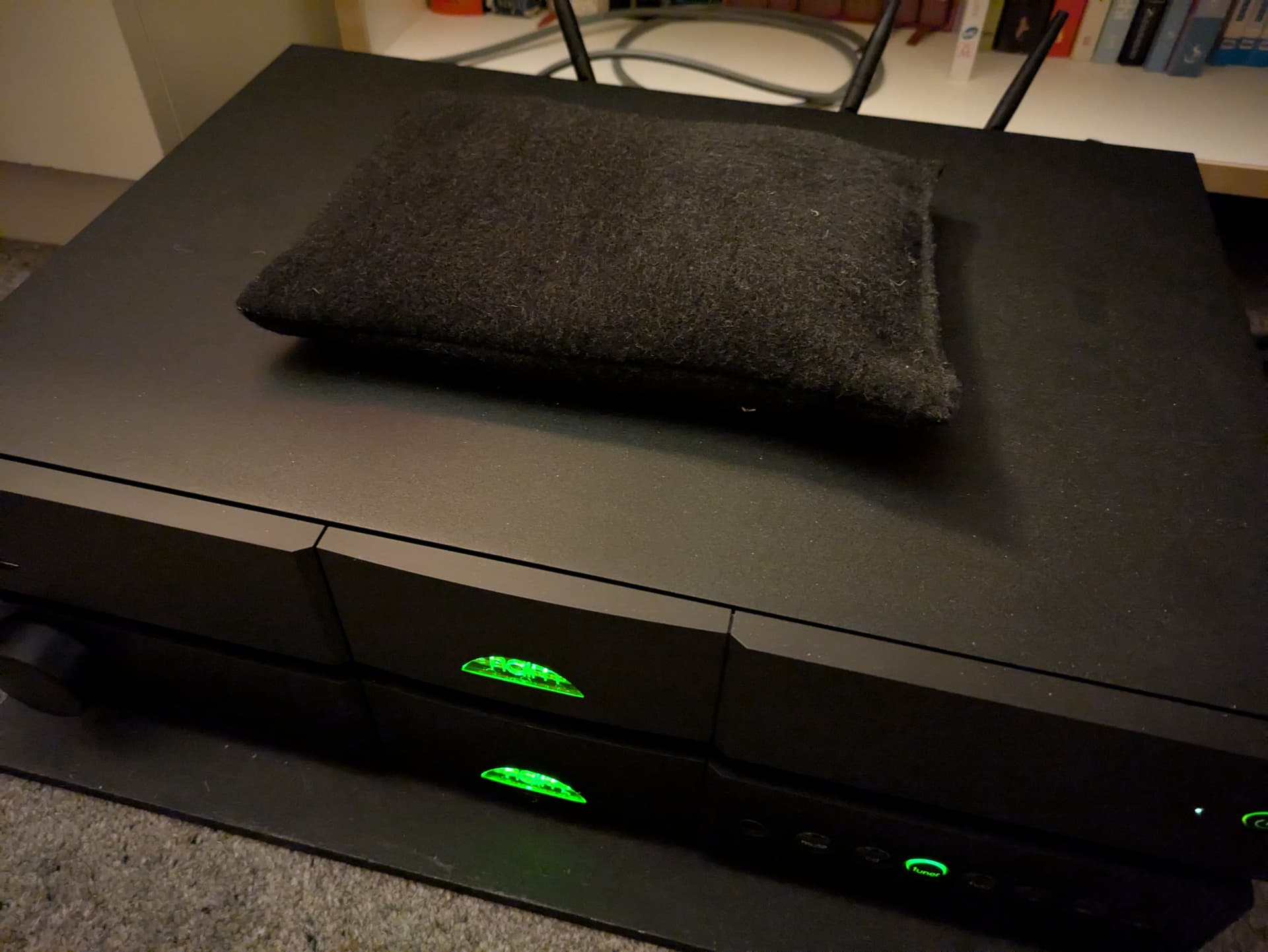 Only noticed this on our CDX when the cat was told loudly to find somewhere else to preen. Put a copy of Linda McCartney Veg Cook Book on top but made no difference to the sound etc.