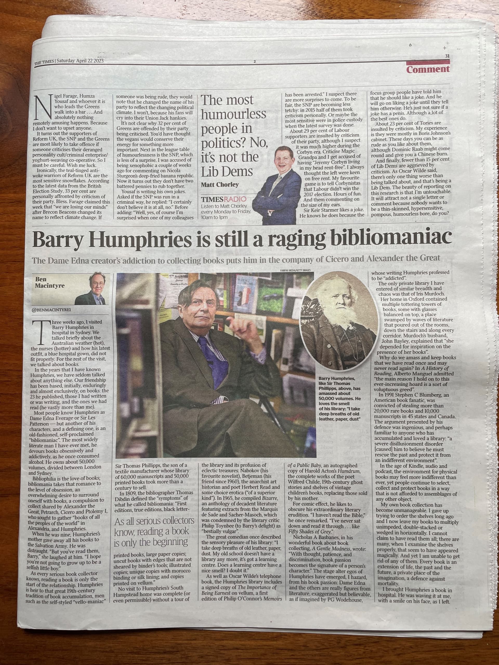 Very sad, I was just reading an article about him in this morningâs Times - about his love of book collectingâŚ