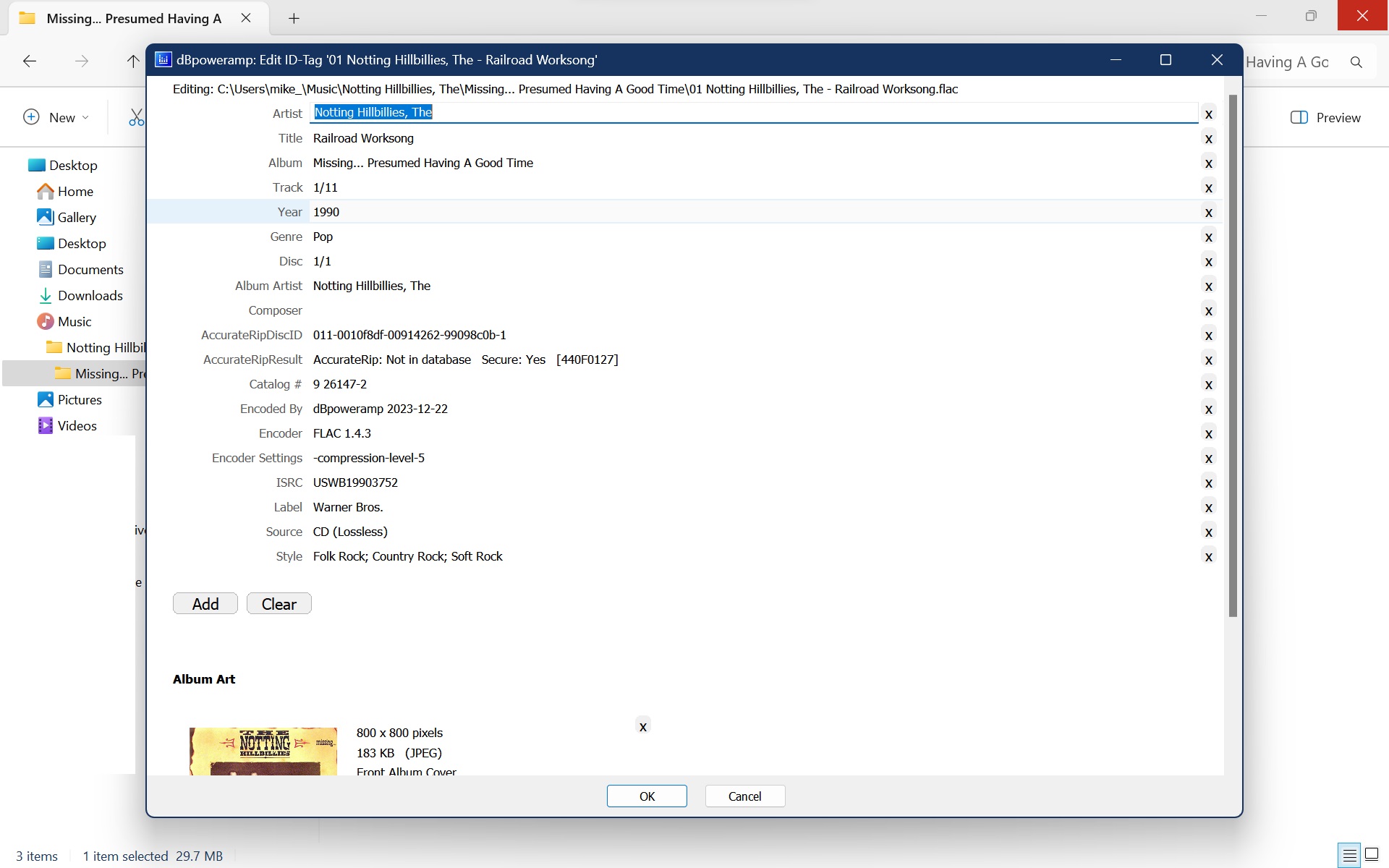 Pic 3 Windows F.E. showing dBpoweramp Edit ID Tags with all CD encoded metadata