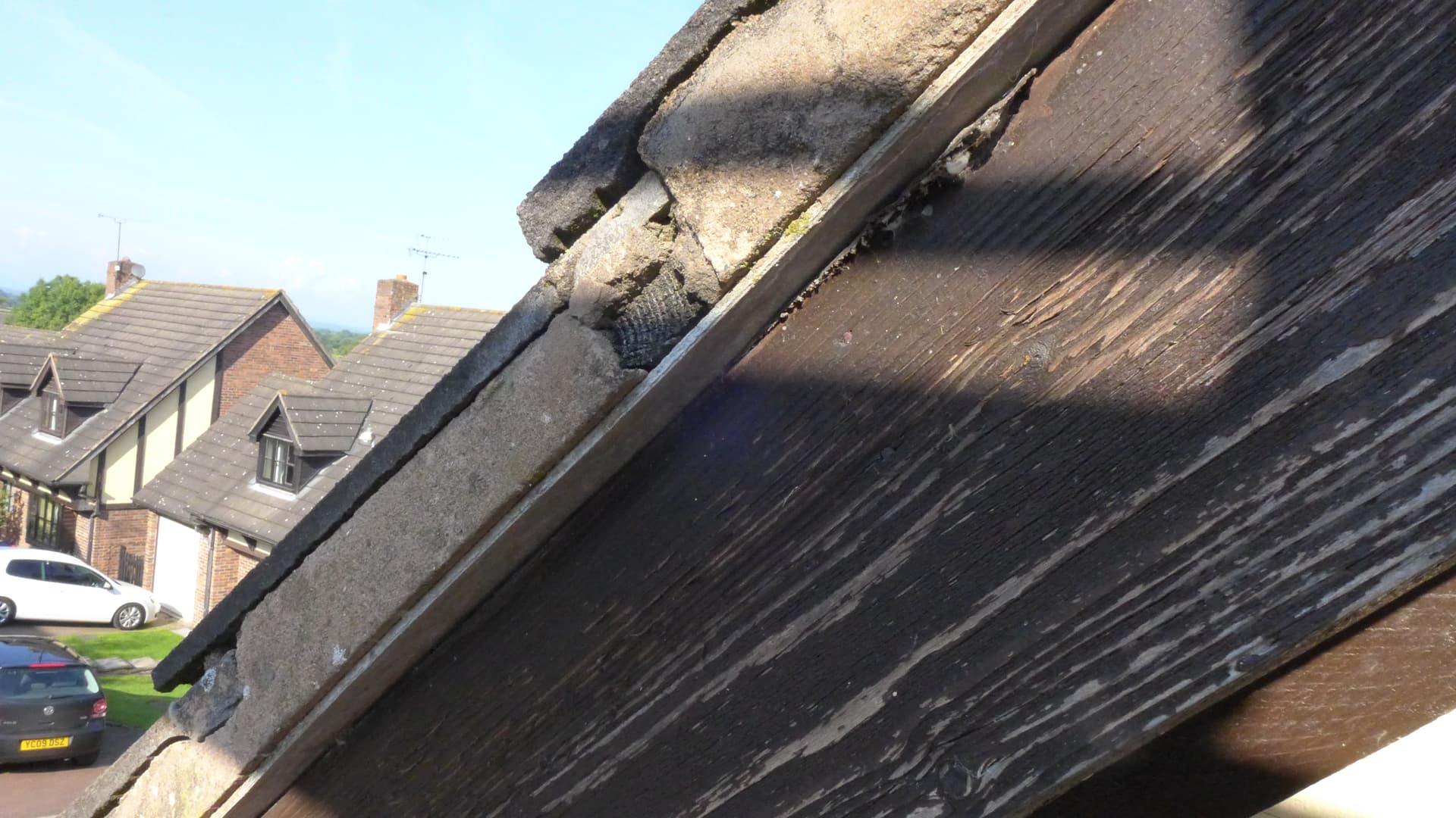 who built my house in 1989 were hopeless, they didn’t crop the tile batons in enough to give the mortar the required depth of room, hence premature cracking up of the mortar and then damp affecting the sticky-out roof batons - see picture below and weep: