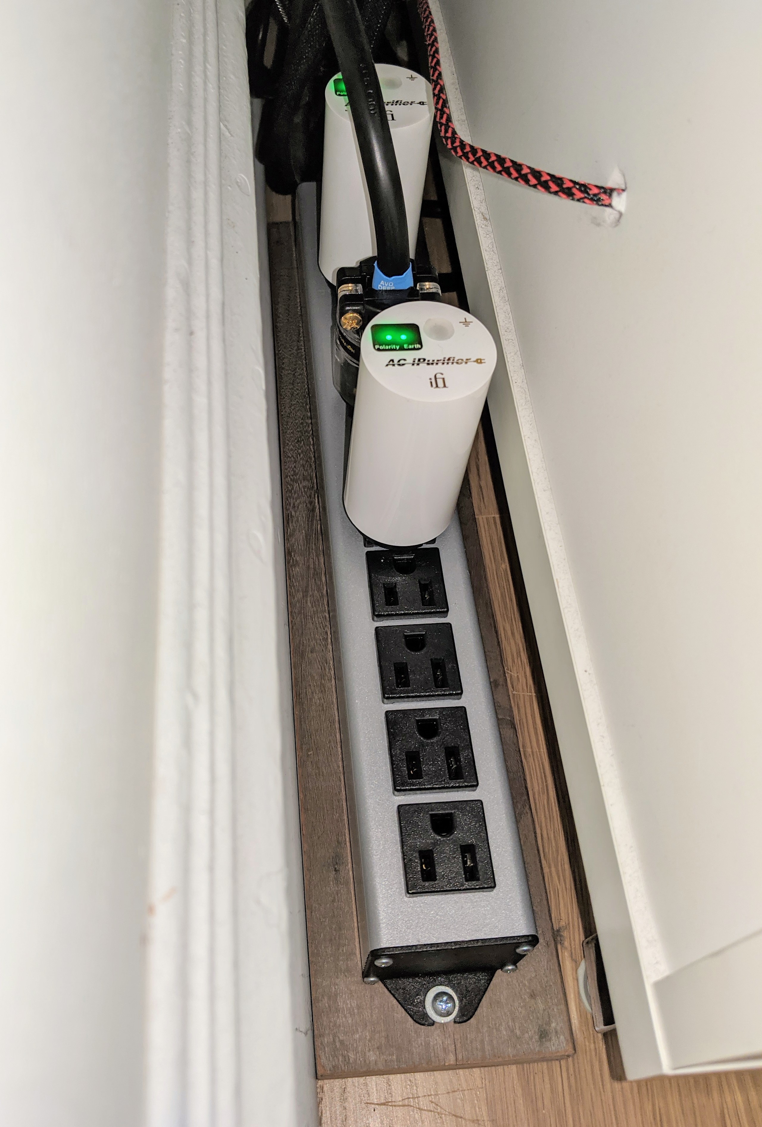 I played with the plug in order, and the best to me was the NAP 160 direct into the wall, and DAC V1 into the power strip with the AQ AC iPurifers before and after it (the other dedicated line is for the opticalrendu and also has an AQ Purifier in it) Sounds super detailed and clean, perhaps a bit on the lean side, but retains all that Naim PRAT and energy (not so when I recently tried a Shunyata cable on the V1). The weak point is probably the actual plug on the Wiremold - I may be able to replace the first of those if I get out the Dremel and rework the openings. Another lazy Sunday down the road perhaps…