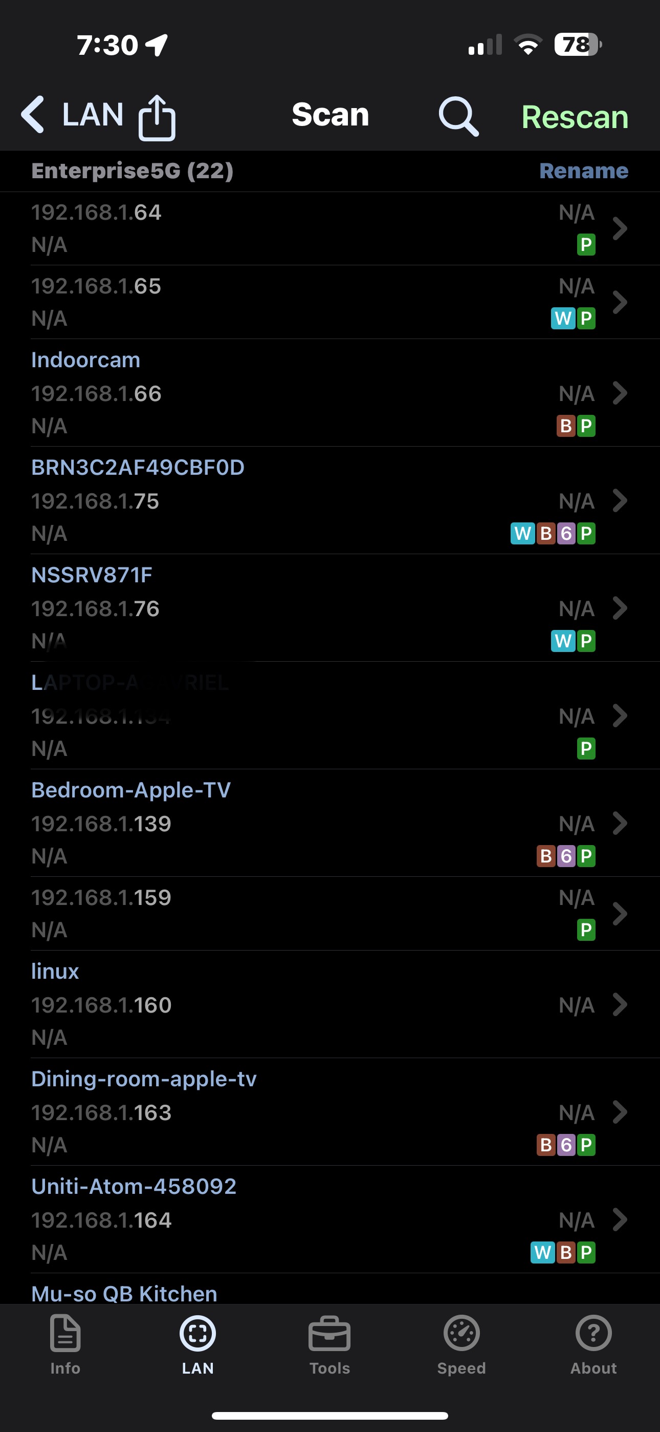 Thanks I ran this now and it can see the Unitiserve IP connection below but does not recognize it as a name product see screen shot below …76. Where to next?