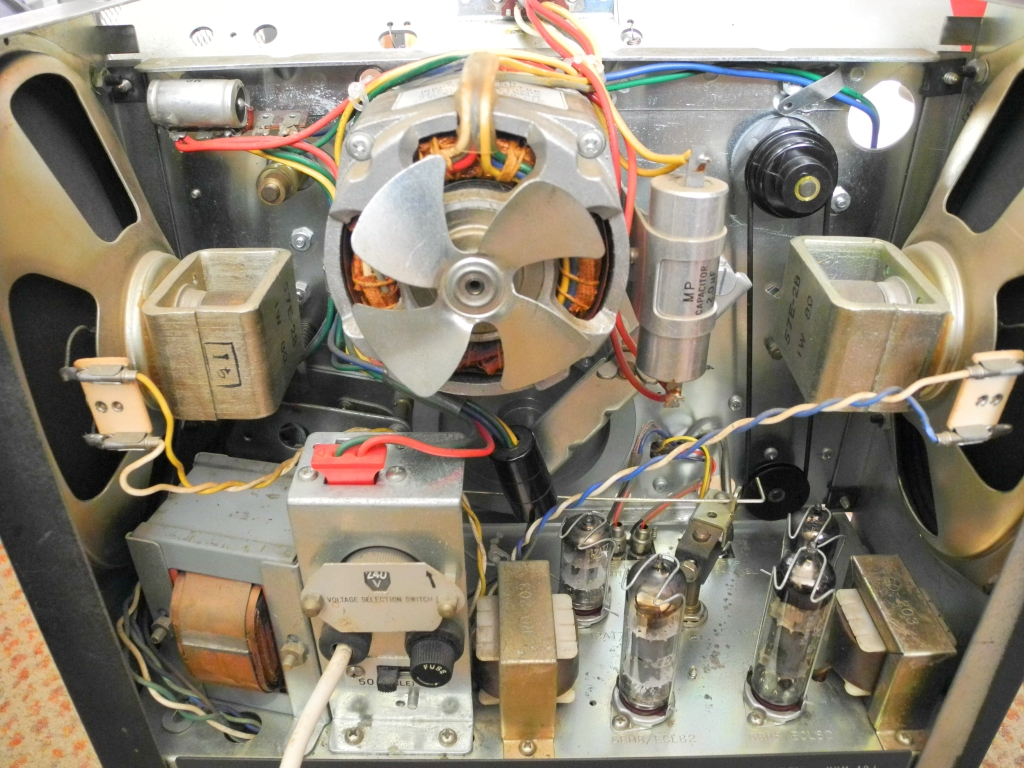 Wow Akai 1710 stereo tape deck from the 1960s. Looks like in good condition! Scary with all the tubes, rubber bands, wheels and fan.
