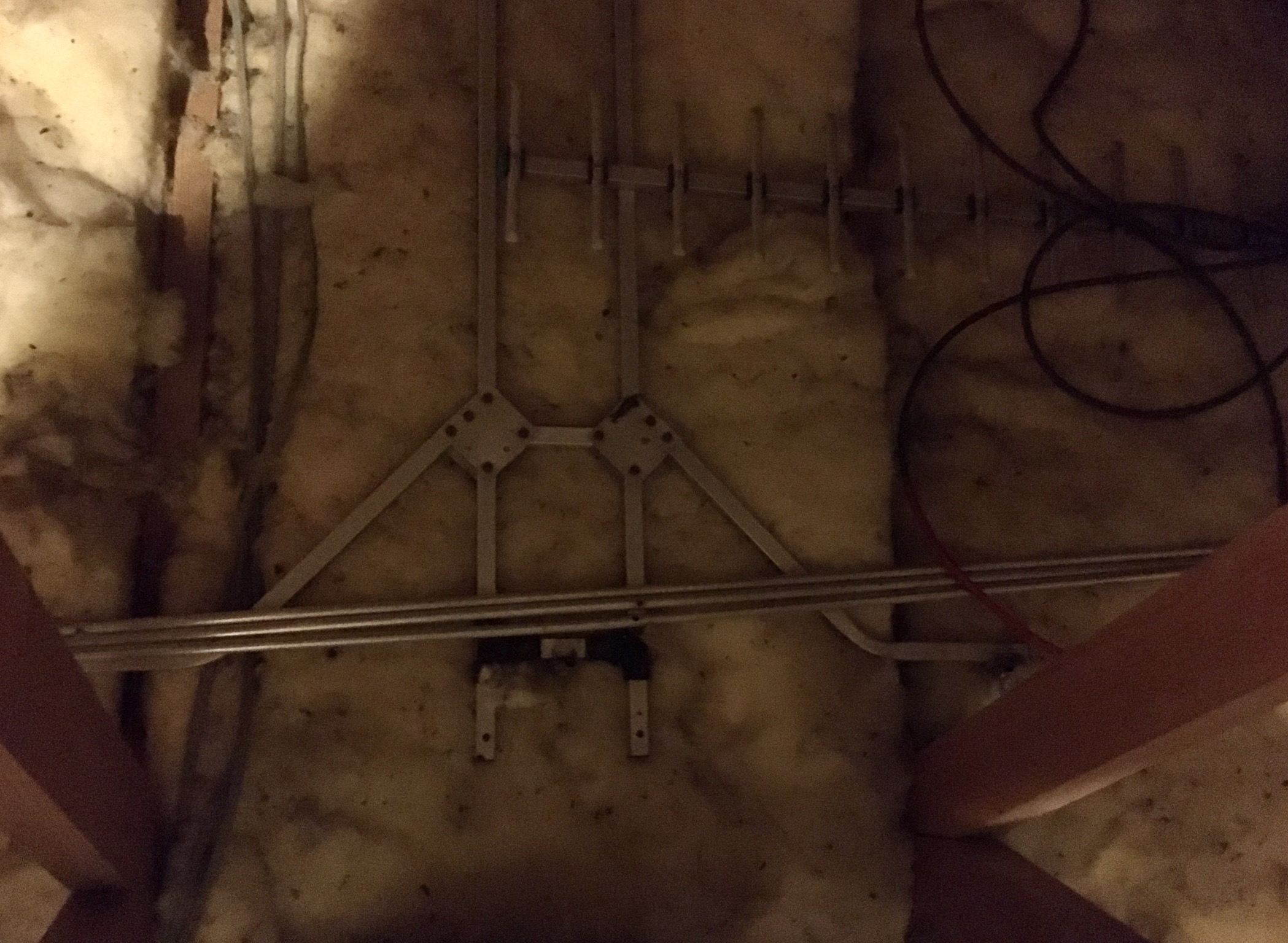 Having seen @Mike-B’s photo of his Galaxie aerial inside his loft space, I thought I’d post a photo of mine. This is a G-17, suspended on nylon cord in vertical orientation to receive the vertically polarised signal from my nearest BBC transmitter. When this was on the roof in my previous house, a further three elements were added, converting it to a G-20, in an effort to receive the signal from the Wenvoe transmitter. Unfortunately, where I currently live I wouldn’t be allowed to have a G-20 on the roof. Fortunately, however, I can just fit the G-17 in the loft space and still get a strong signal.