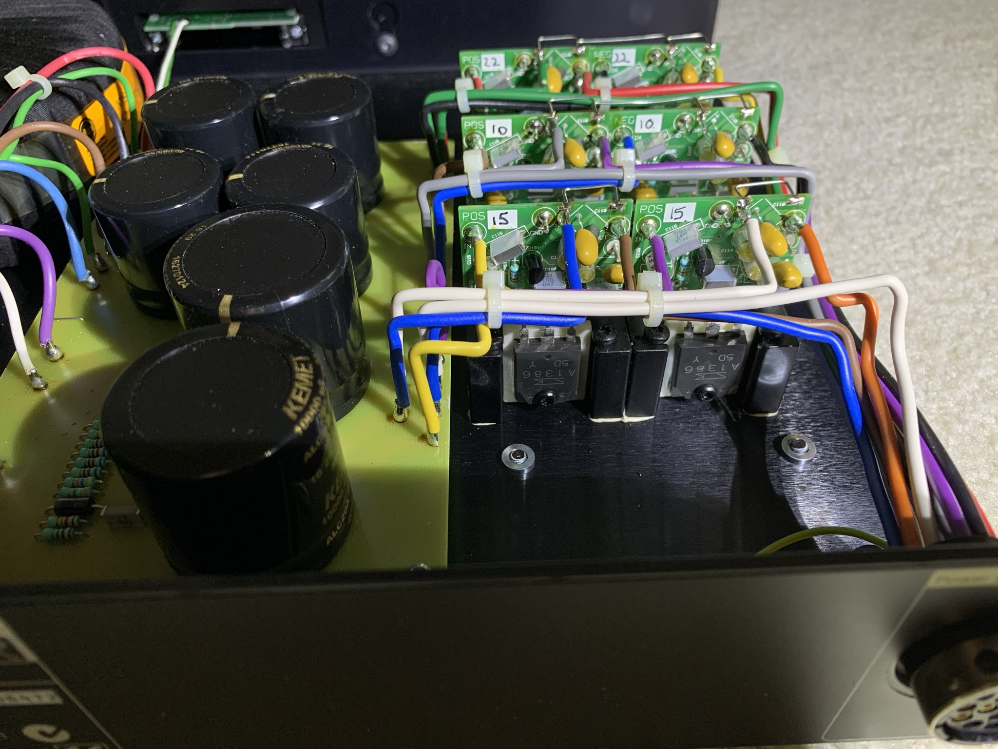.This inside view of a Linn reminded my of a couple of pictures I took when I replaced the built-in under chassis power supply with an external Atlas power supply on my Alphason Sonata Gold turntable, which I still have of course.