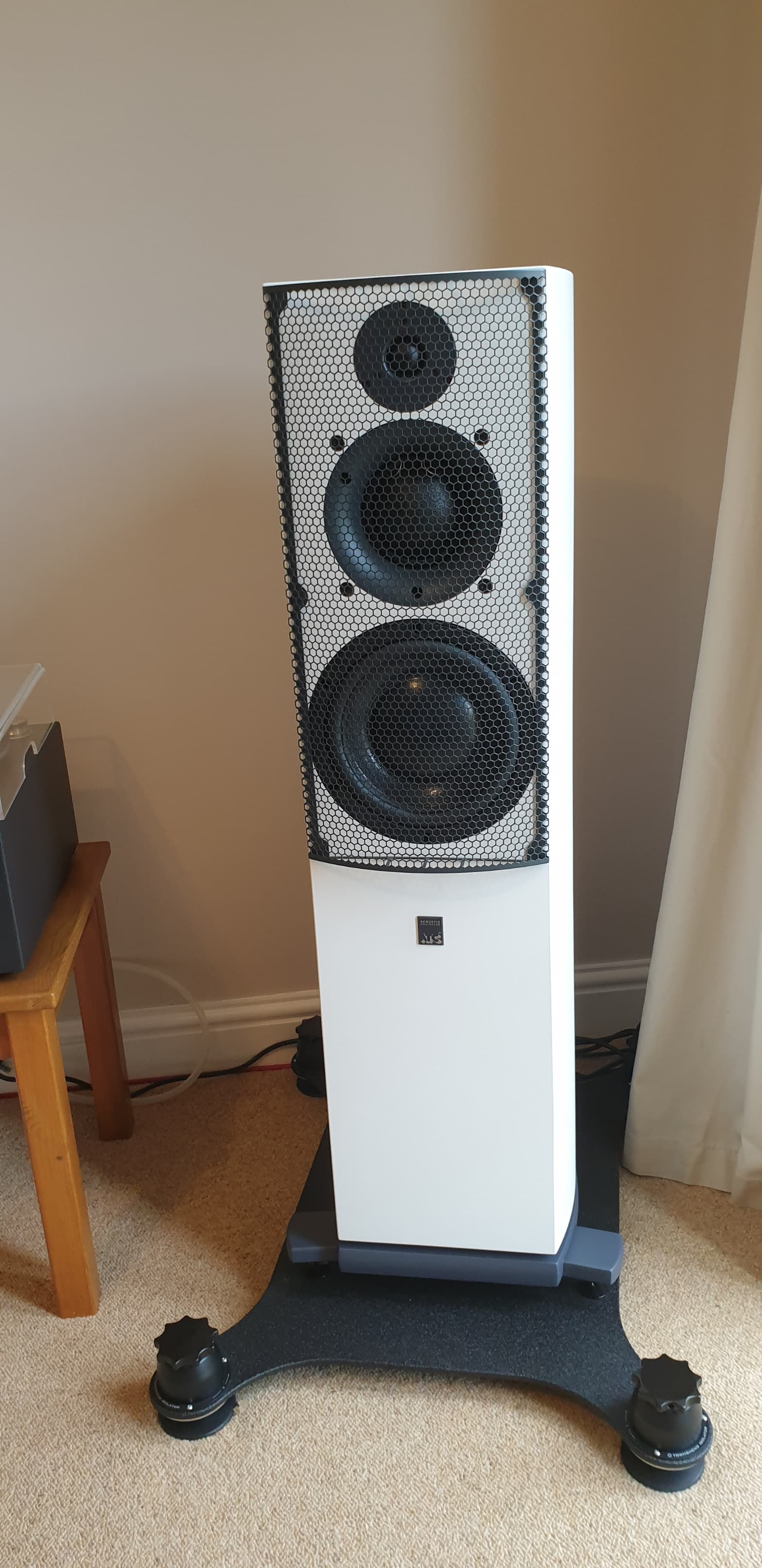 So that brings me to my ATCs - which are just this mid unit. They are combined with a Scanspeak tweeter, in a “satellite” enclosure (in prototype at present, unfinished). They presently, and nominally on a temporary basis, sit on top of my PMC EB1i speakers which now serve only for bass, the whole actively triamped. The huge magnet of the ATC unit means each satellite weighs best part of 10Kg!