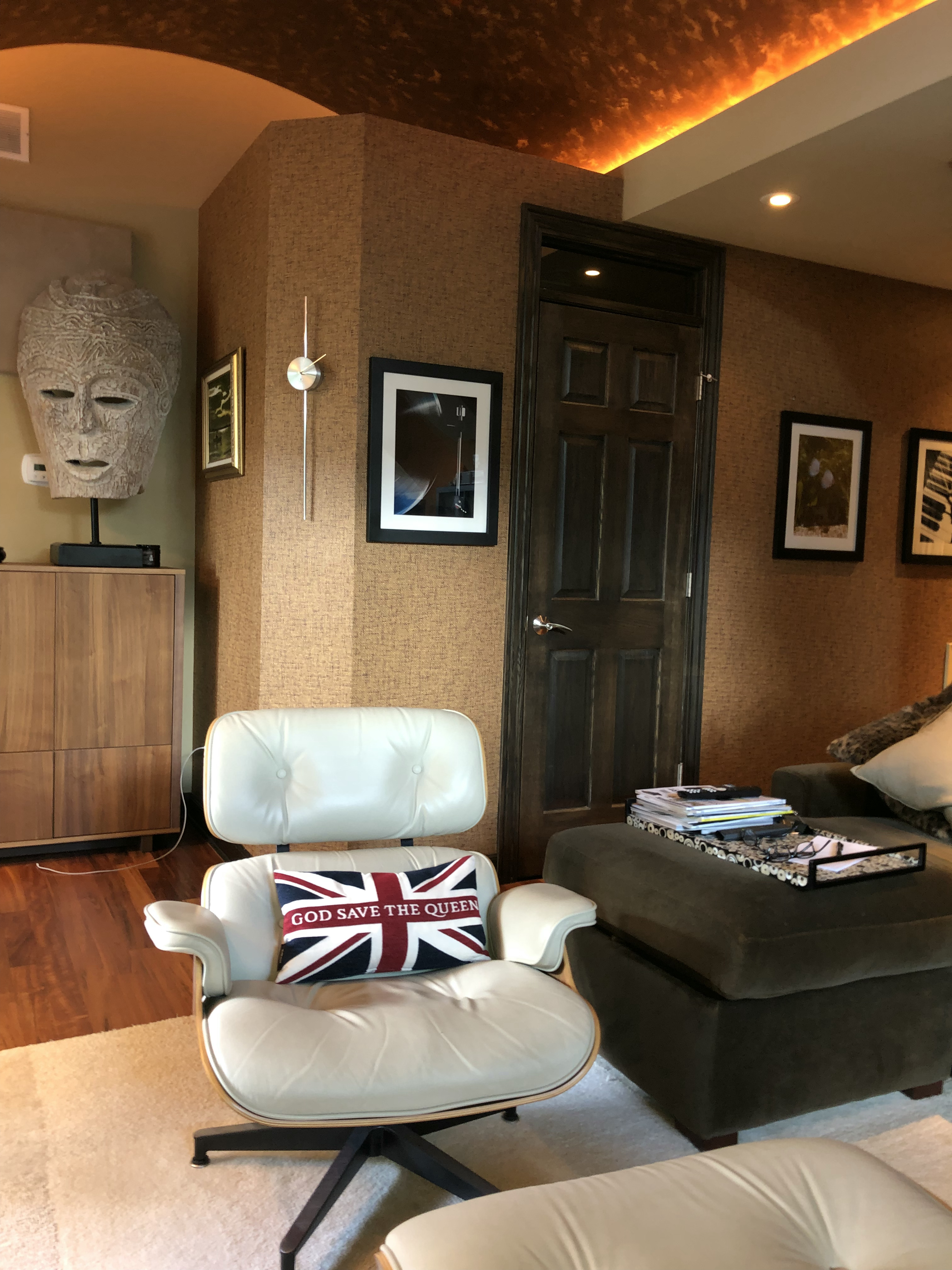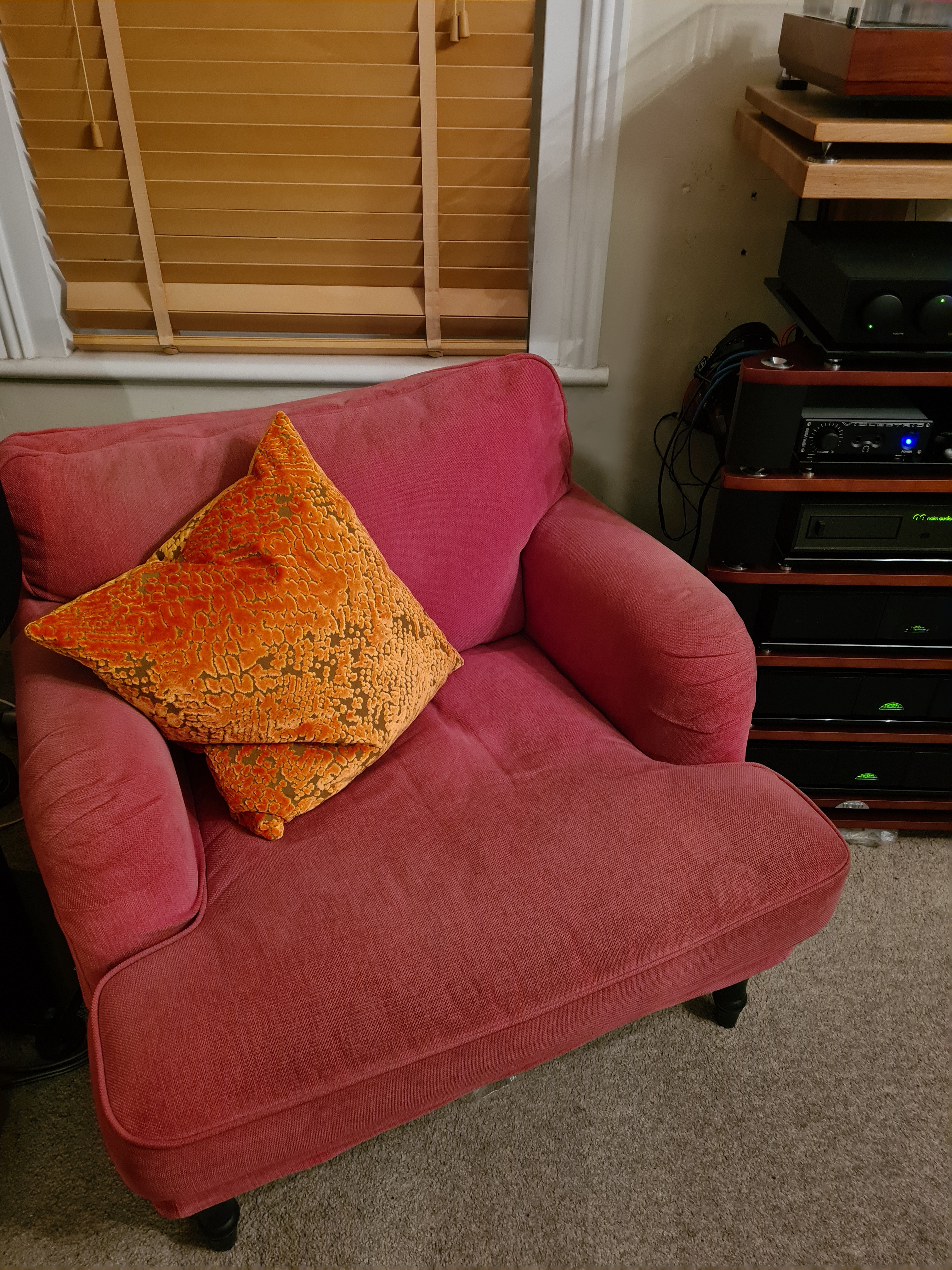 Thanks Popeye. It’s usually infested with our dogs but they were out being looked after to avoid the stress of the sofa delivery. System is out of view on the right. Listening seat on the left.
