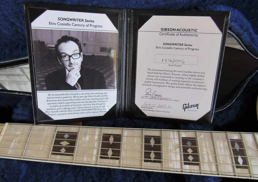 I am pretty damn pumped - just bought this 2012 Gibson Elvis Costello L-Century “Century of Progress” (#148 of 300). It’s a reproduction of the 1936 guitar Elvis had and lost in a flooding accident…OO body size.