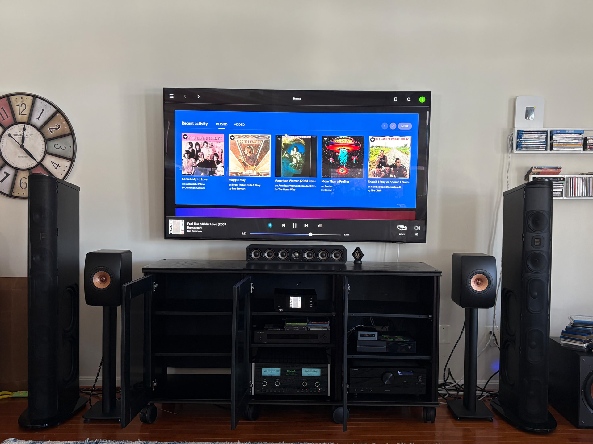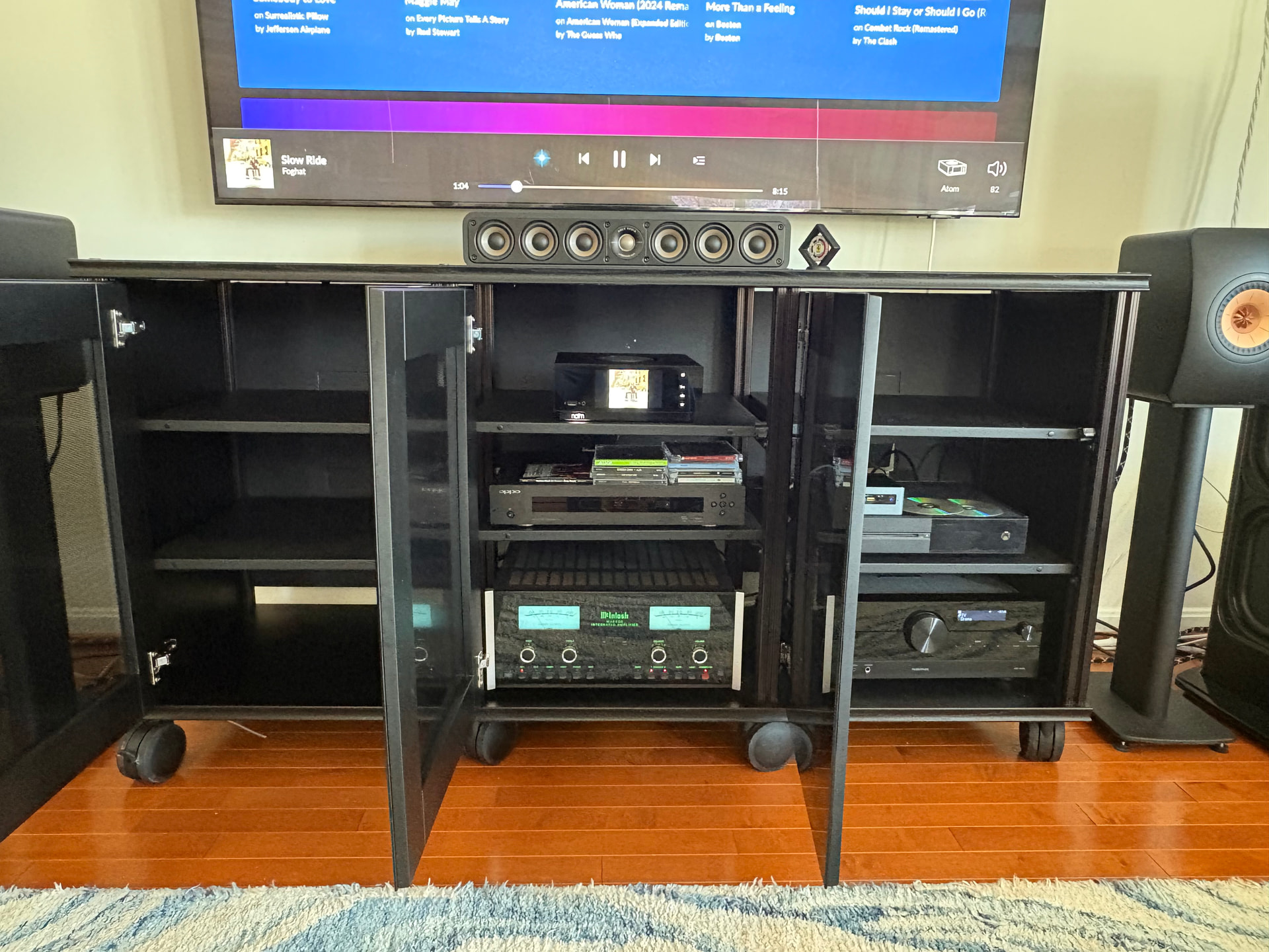 Nice set up. What’s the music app you are using on the TV screen, and how is connected to the hi-fi?