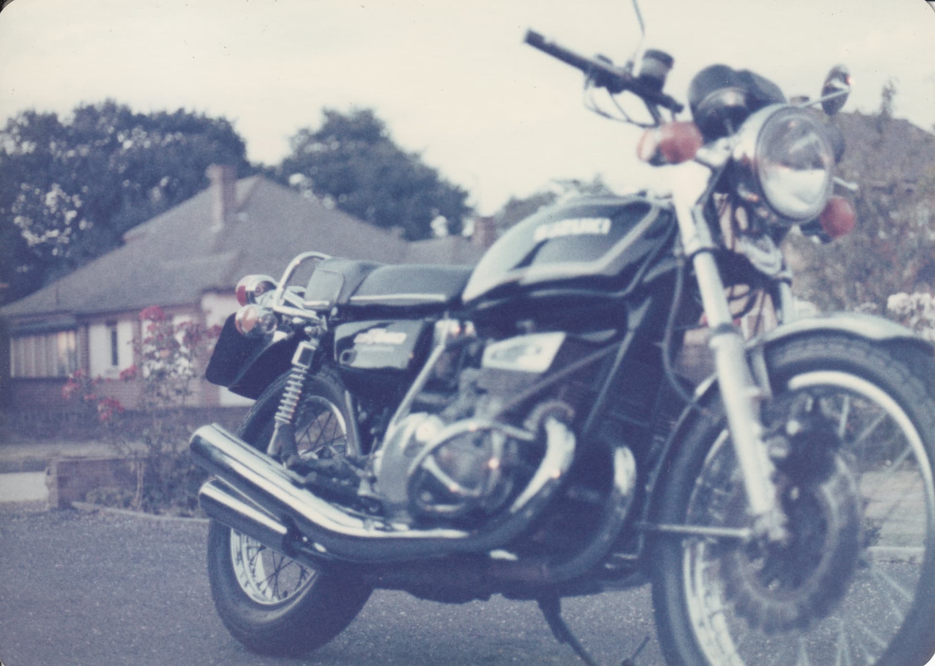 Looking at the Suzuki photo gallery made me realise I got the bike in 76. One year earlier than the photo, my mate took that photo outside his house.