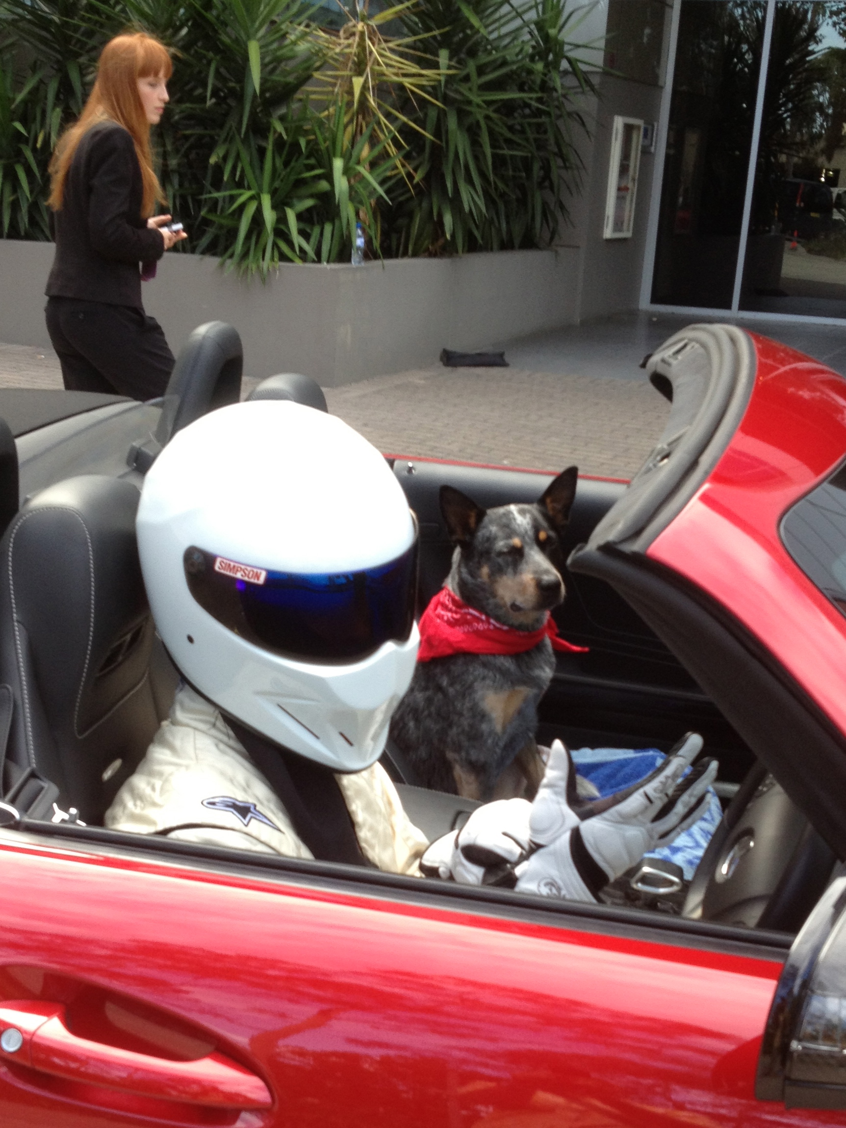 I’ll start with our blue cattle dog, Diesel. We’ve had him since he was 4, we were lucky enough to rescue with from a shelter. Soon after getting him a friend asked if they could use him in a Top Gear ad for the BBC, the photos below are on the set that day with the “Stig”. Ever since he’s been laying around on the lounge waiting for his agent to call.