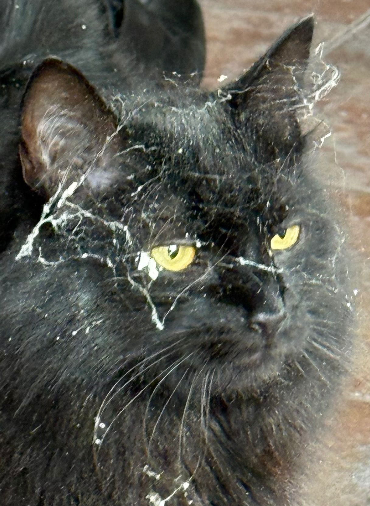 My previous cat pal, Audrey didn’t quite make it to 20 years - she came very close but suffered weight loss and seizures. At her age, I decided to let her go rather than stress her with vets tests etc. towards the end of 2023. After I moved back to N Ireland last year, a semi wild fur ball decided to move in. He managed to climb the ladders into the roof space recently and wherever he rummaged around, he appeared looking like an extra from Halloween…. Made me laugh anyway!