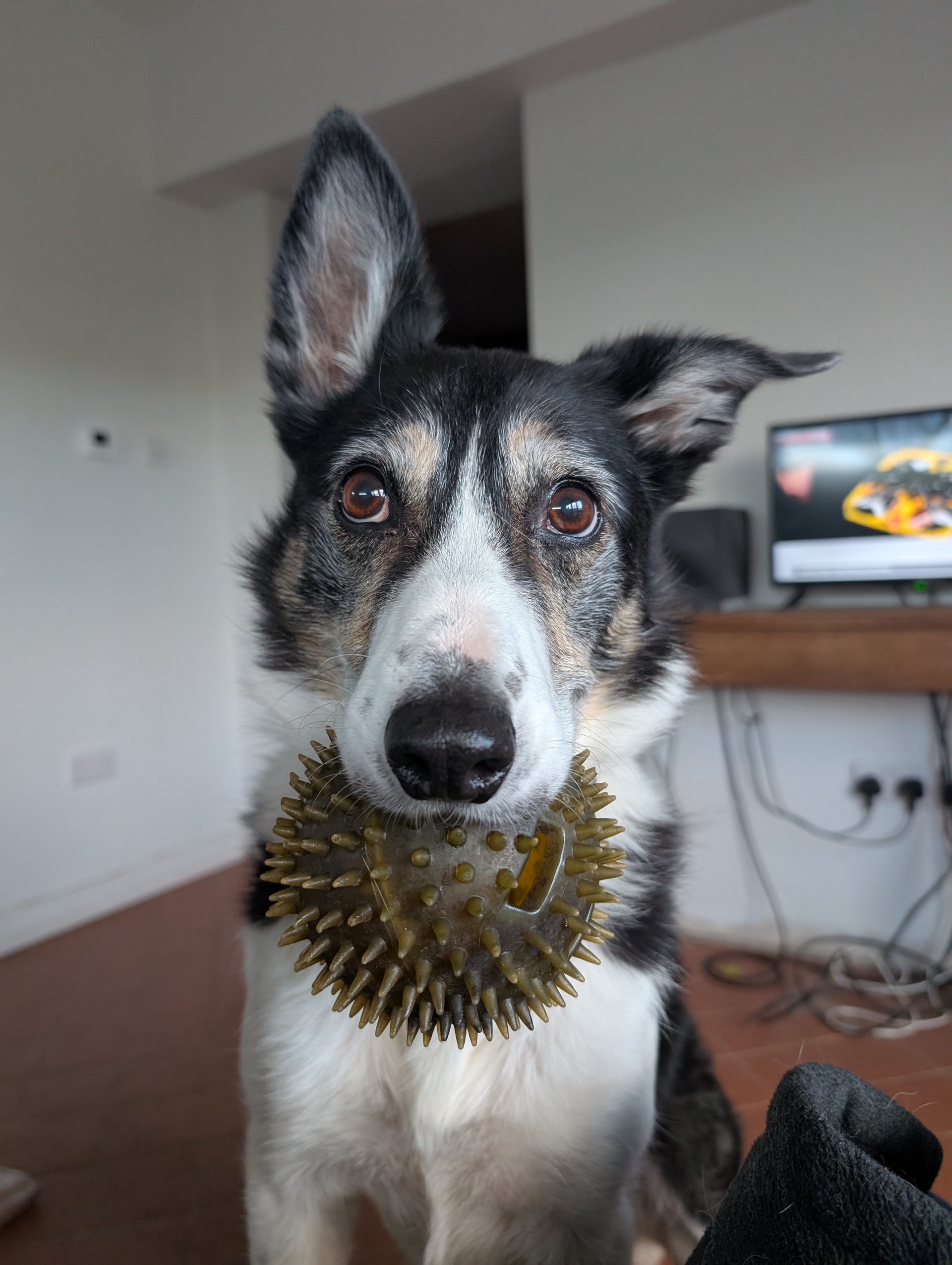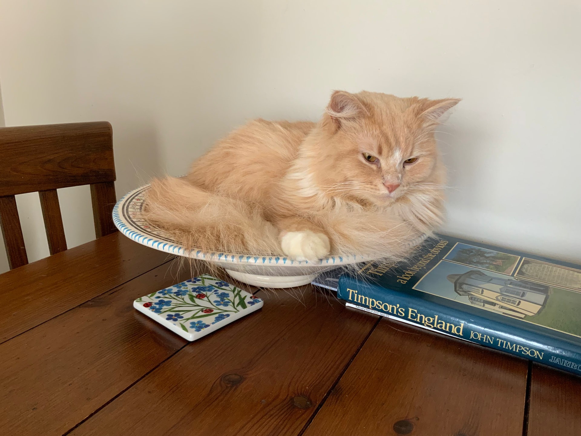 Our friends’ cat, our dish. Sent with the header “serving suggestion”. Yeah, c’mon, try your luck, dog boy!
