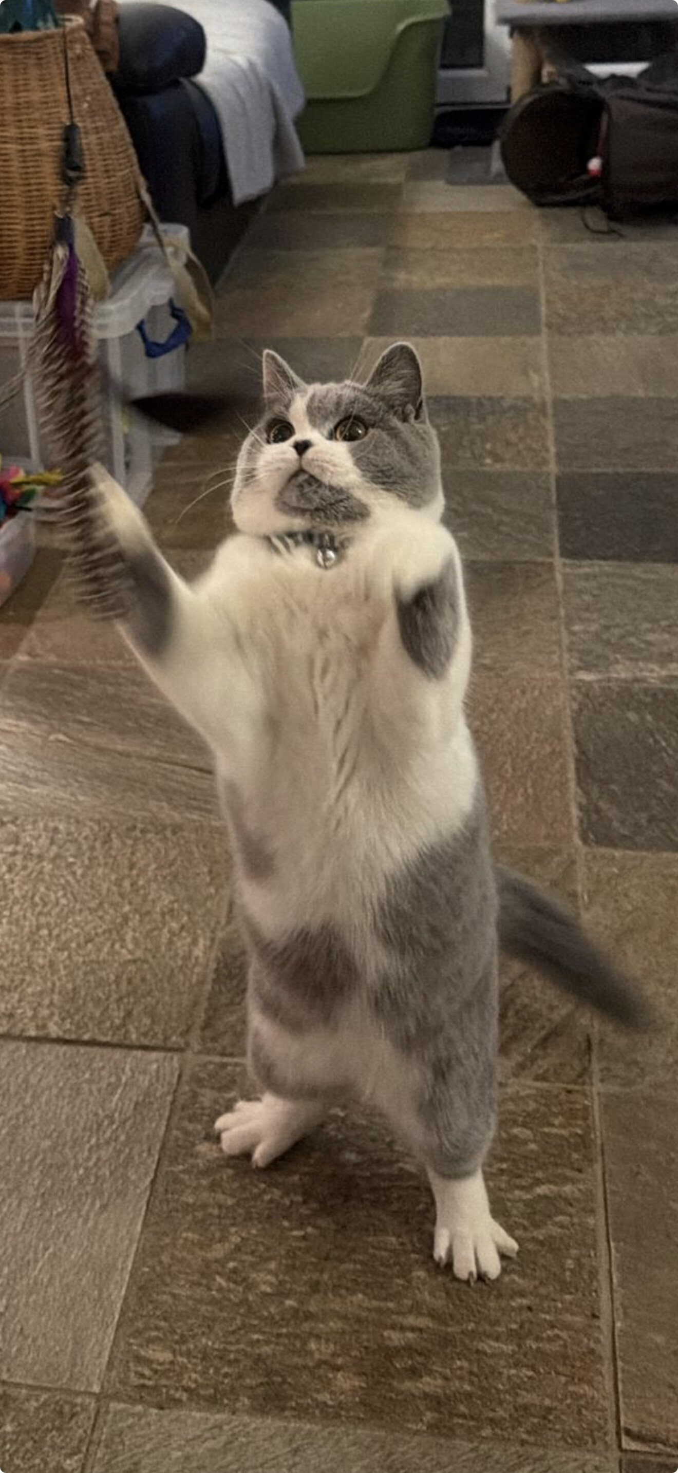 He is a lovely boy……you can do anything with him…….loves a cuddle, playing, sitting on your lap. If i have a Sunday afternoon doze……he sneaks on me and has another nap. His sister is lovely too, but a bit of a diva…….and just wants to be near me, or needs my help to get on the window sill, opening doors etc![]()