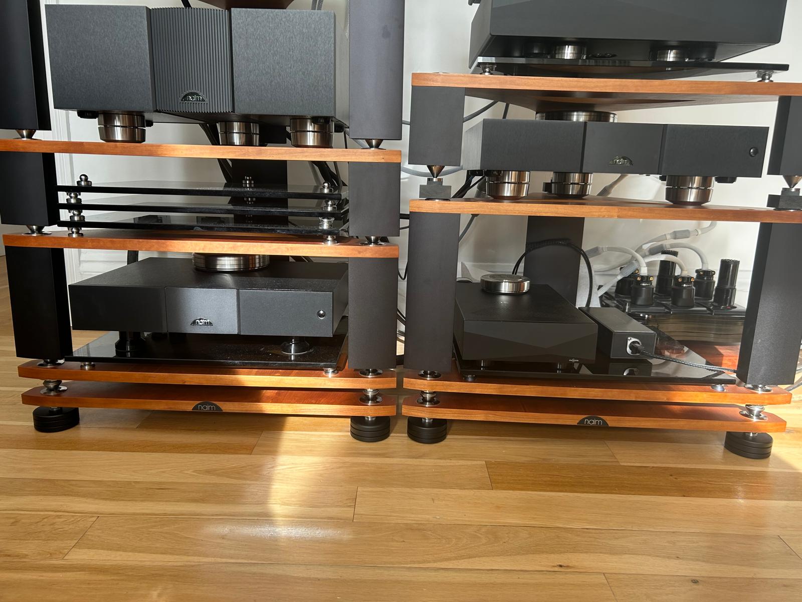 Herbie’s small gliders under my allaes, though I think the ease of precise repositioning of the speakers is their greater benefit. I’ve used them in a third floor flat with Thiel CS1.6, NBLs and alleas and for some of that time there was a new mother living below and I never had a complaint. The titanium ones resulted in a slight improvement over the brass but on NBLs through 500 series it’s only slight, I’ve not compared them with the allaes/282/250 system. Nor have I tried fancier alternatives but they don’t seem to fight against the built in suspension of the Naim speakers. They’re relatively cheap too.
