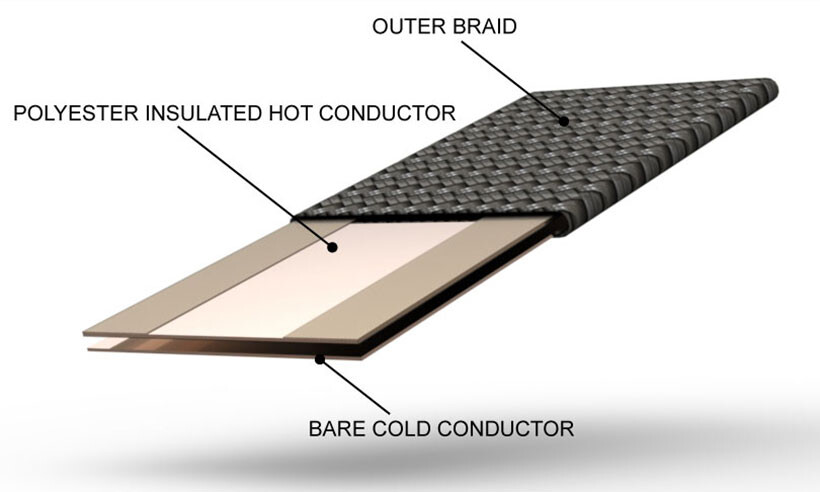 The ‘cable’ is effectively an unrolled capacitor, two strips of flat conductors laid over each other.