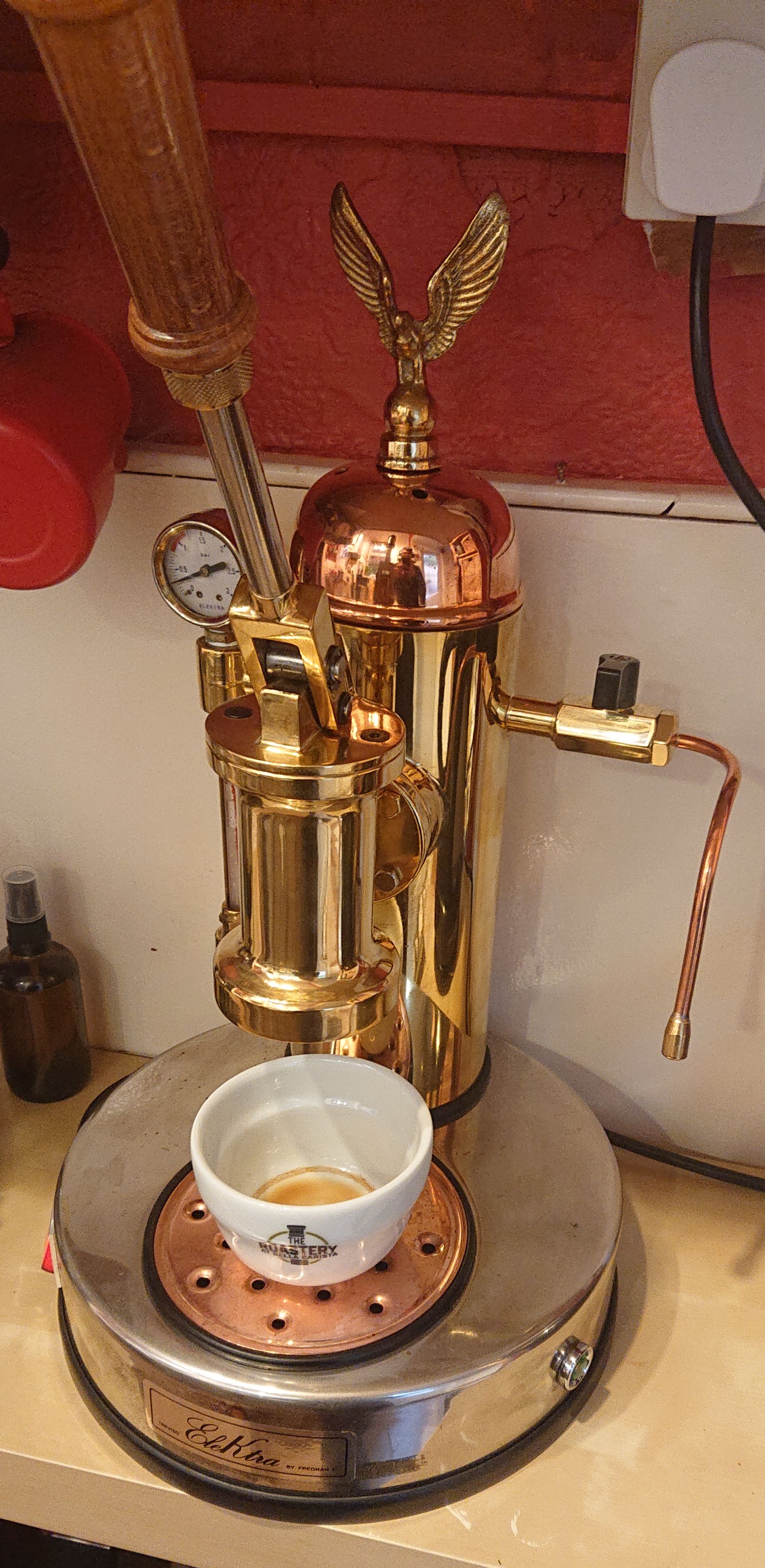 The Elektra isnāt difficult to learn once you have got the grind and dose right. Leave a little headroom in the basket and let the spring get on with it. Provides nicely-layered shots. Great for Yirgacheffe.