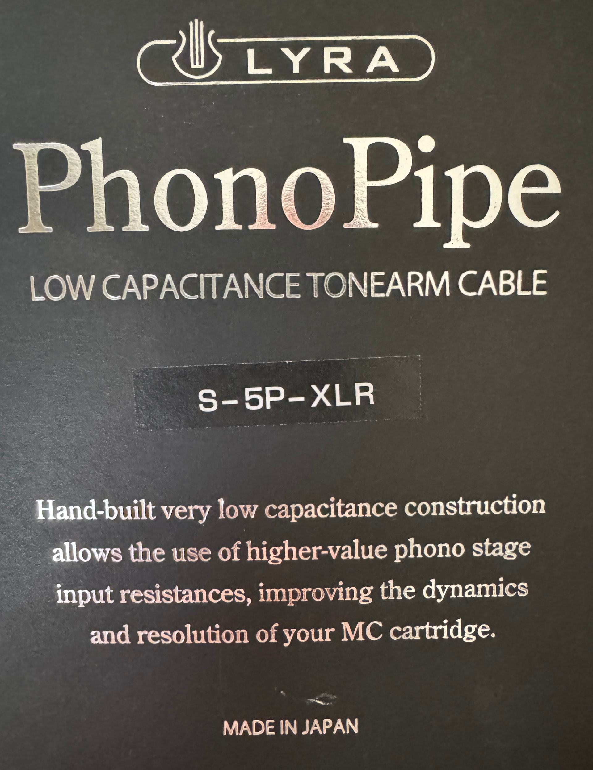 The Lyra PhonoPipe tonearm phono cable is specifically designed with ultra low capacitance of 32pF, specifically so one can use less loading (i.e. higher R values) for better performance.