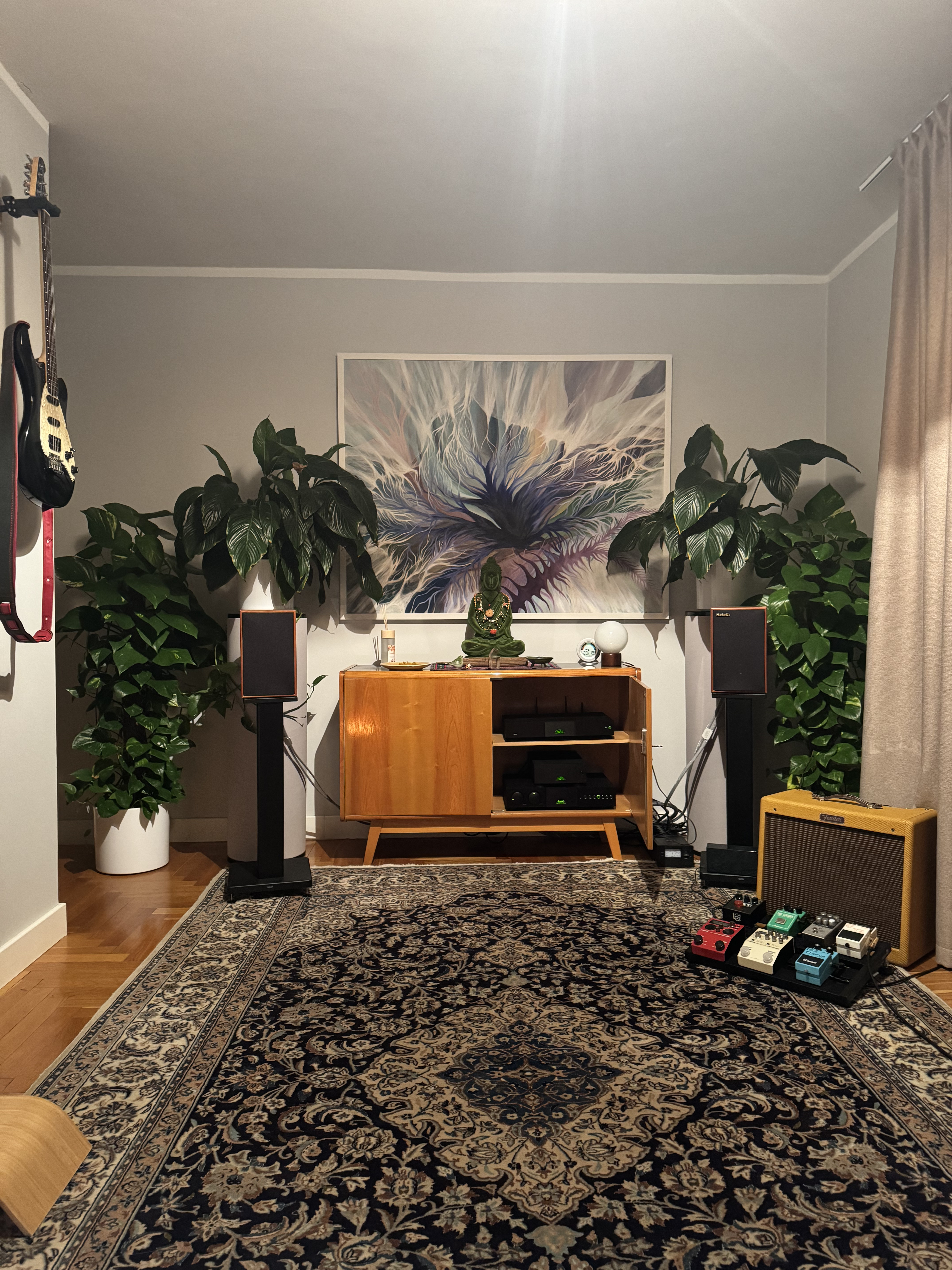 After switching through a couple of settings, I’ve ended up with Naim gear, mainly because I’ve found it gives the most natural sound to my taste, not so ‘audiophile’ (slow somehow) as some other I’ve had, but more realistic and present. Harbeths were chosen after testing just a few others speakers some years ago - before I’ve had Revolver Music 1 speakers which were very good for it’s price, and I’d say just the bass, which was tighter was better than in Harbeths. Now I moved to the other flat, and wondering what would be the next step at improving the sound, I’m still missing some control over the bass, maybe some high tones could be slightly emphasized too. Thinking about either changing streamer to NDX2 or speakers- but not sure which would be the right choice for the room size. Should I consider Harbeth 7es3 (aren’t they too big?) or 30..or maybe try something different, like Neat for a change? (haven’t heard them yet). However I wouldn’t resign with that midrange and ease of listening. The money to spend is around 3k, I’d rather go for a second hand. The cables I’m using are Albedo monolith (silver) - RCA is far better than standard Naim DIN cable. I had to adopt the room a bit as the acoustic was terrible, lots of reflections, even when talking. Any advices will be very appriciated. My instinct tells me:) that Harbeth 30 would be the optimal choice but maybe I’m wrong, and should consider some other option to go. Attaching some photos of the room.