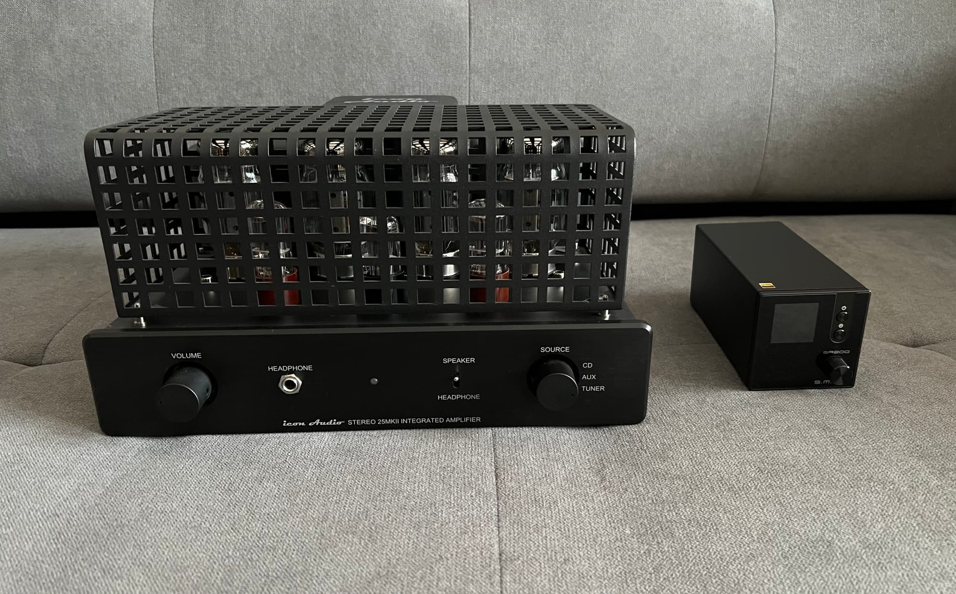 Mrs DG said she loves the system, but no more spending on cables. So I’ve been upgrading my second office system. Changed amplifiers, from an Icon Audio Stereo 25 MkII integrated valve amplifier to a SMSL SA300 digital amplifier / DAC.