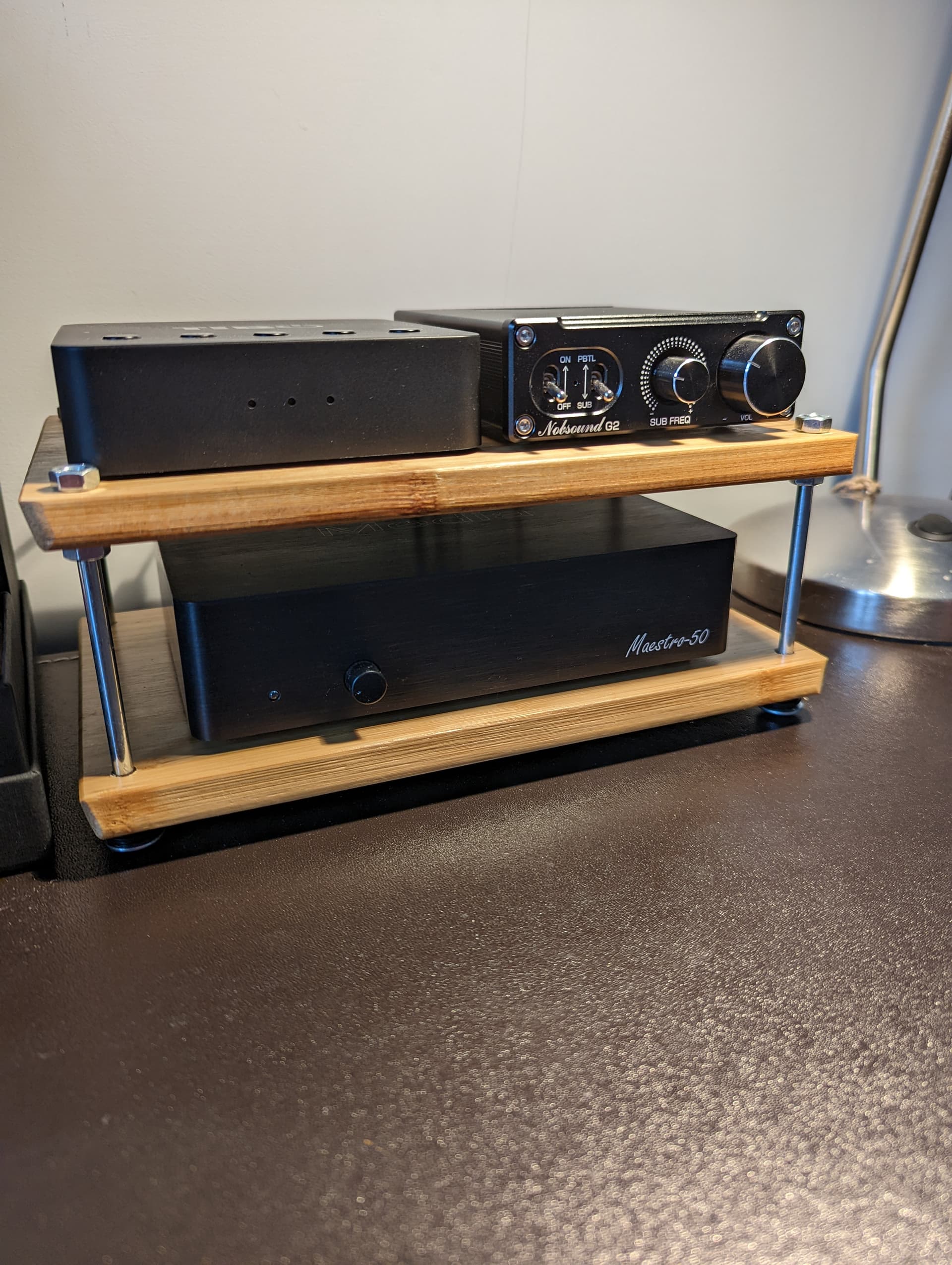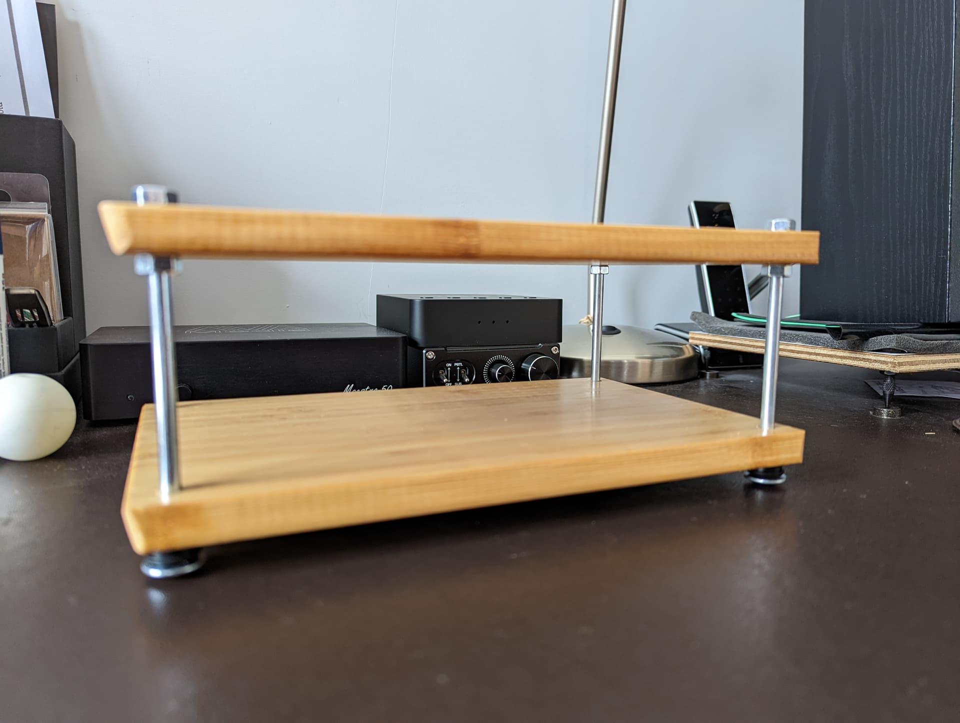 Today my son and I made a little hifi rack for my desktop system in the office.