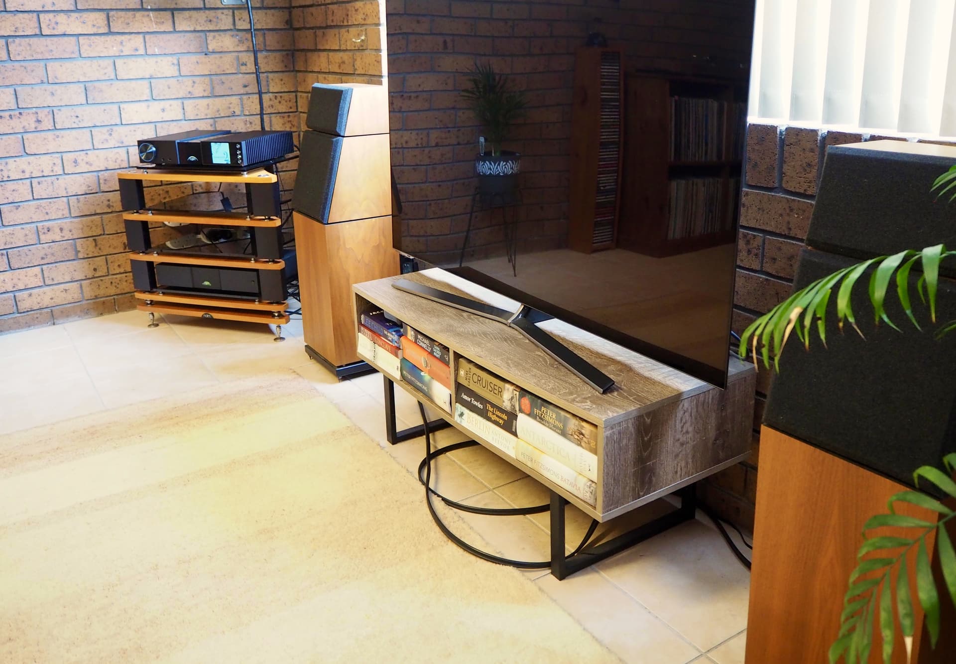 Nice room and elegantly simple system. Great book choice, but not sure about the socks!