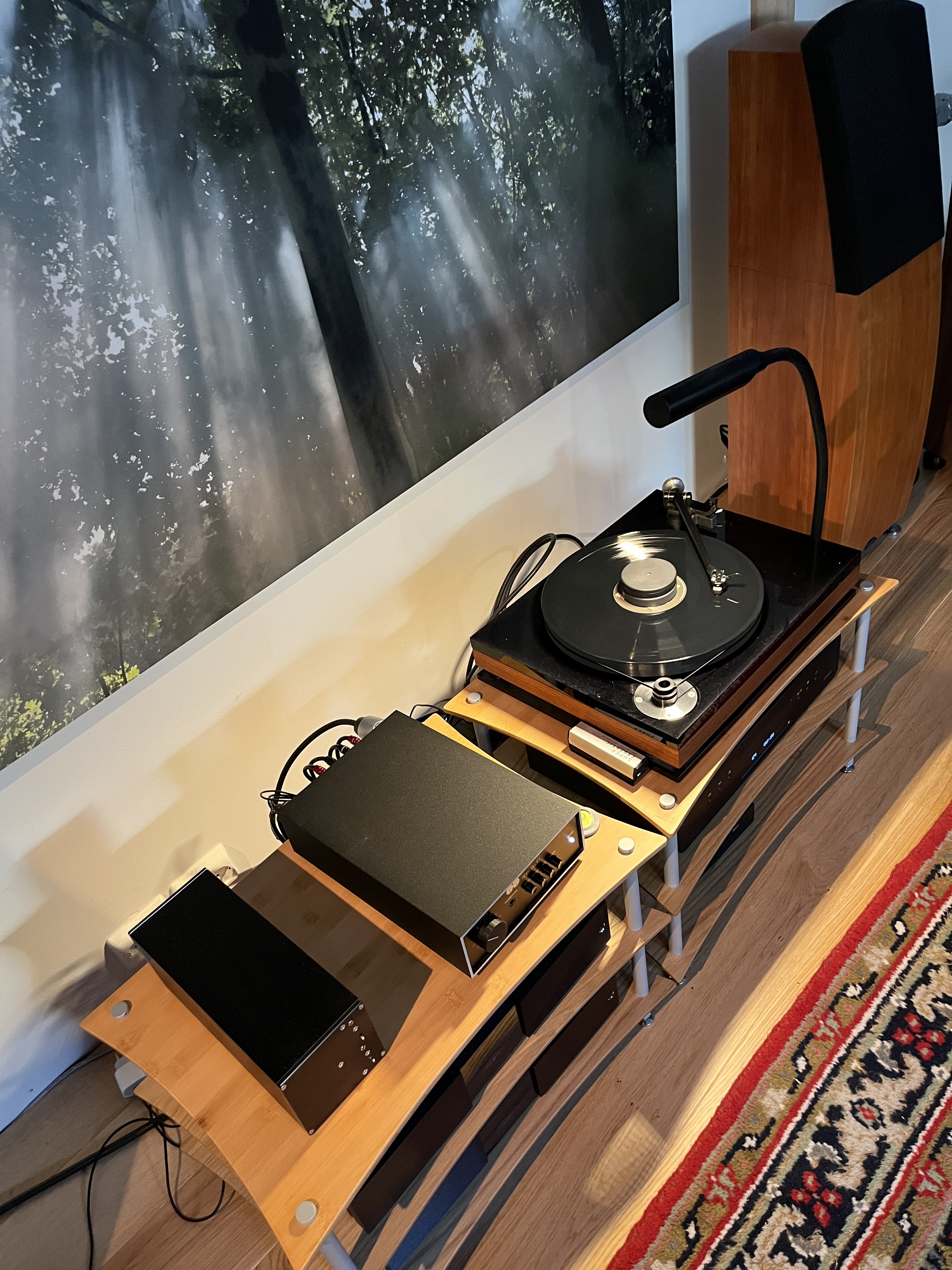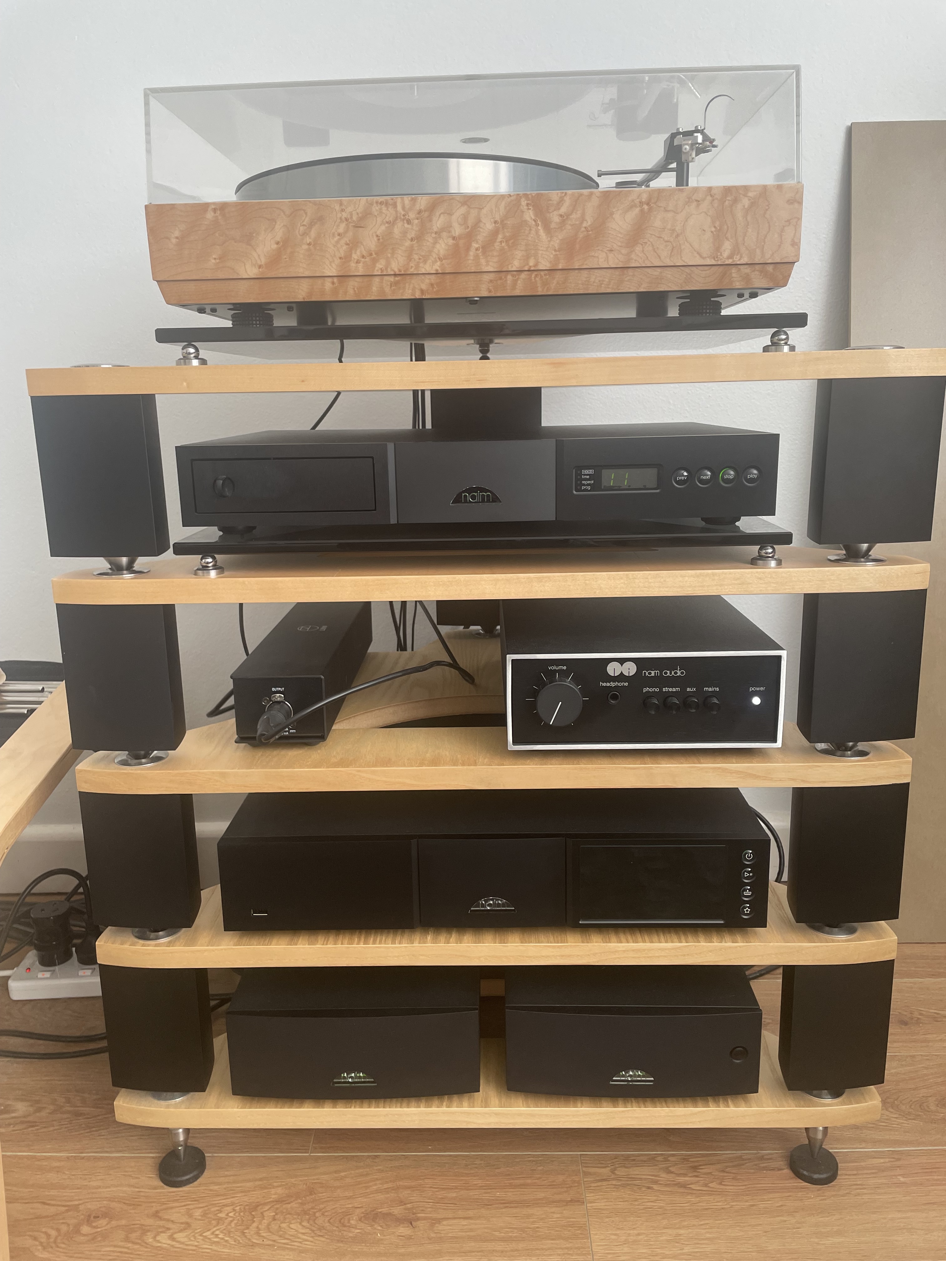 After a long pause I now have new speakers. I’ve put them on Gaia IIs because the floor is LVT over concrete and spikes aren’t allowed! I was lucky to get this upgrade so not pushing my luck