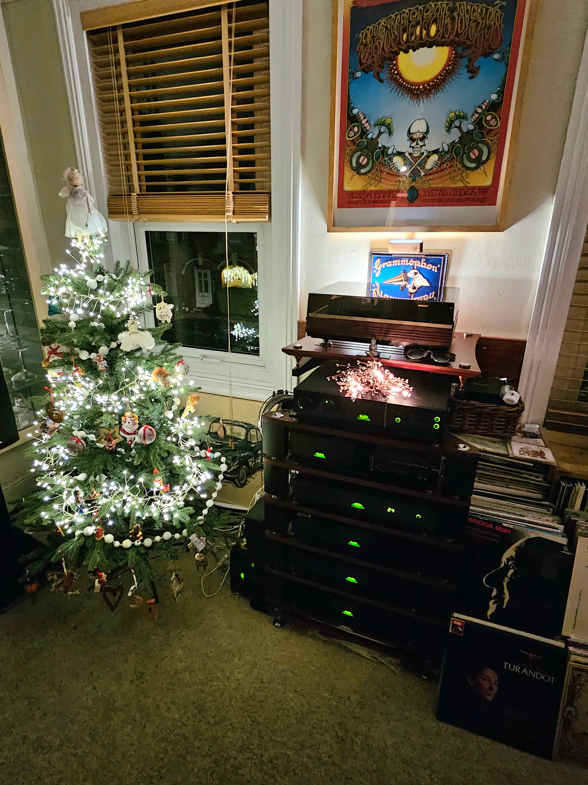 As you may have observed if you’ve read this far, my Naim gear is old. Besides loving how it sounds, I really like the look of chrome bumper and olive gear. The amplifier with the brushed aluminum faceplate is a Roberts STA-100s, circa 1980. It sounds pretty good too.