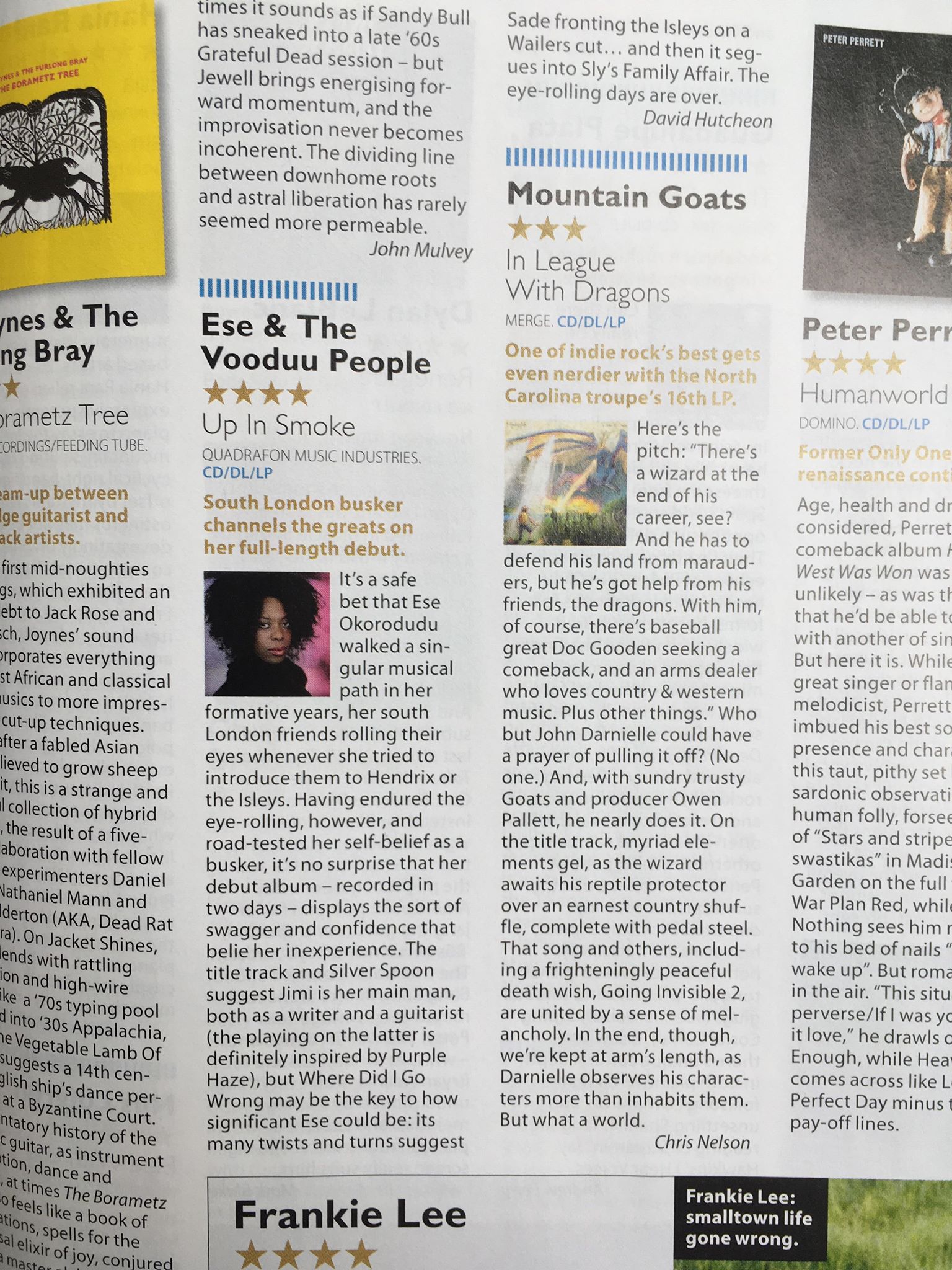 I’m sure you’re probably aware, but this month’s Mojo, which plopped through my letterbox yesterday, gave Ese’s album four stars, which equates to “excellent” in their ratings.