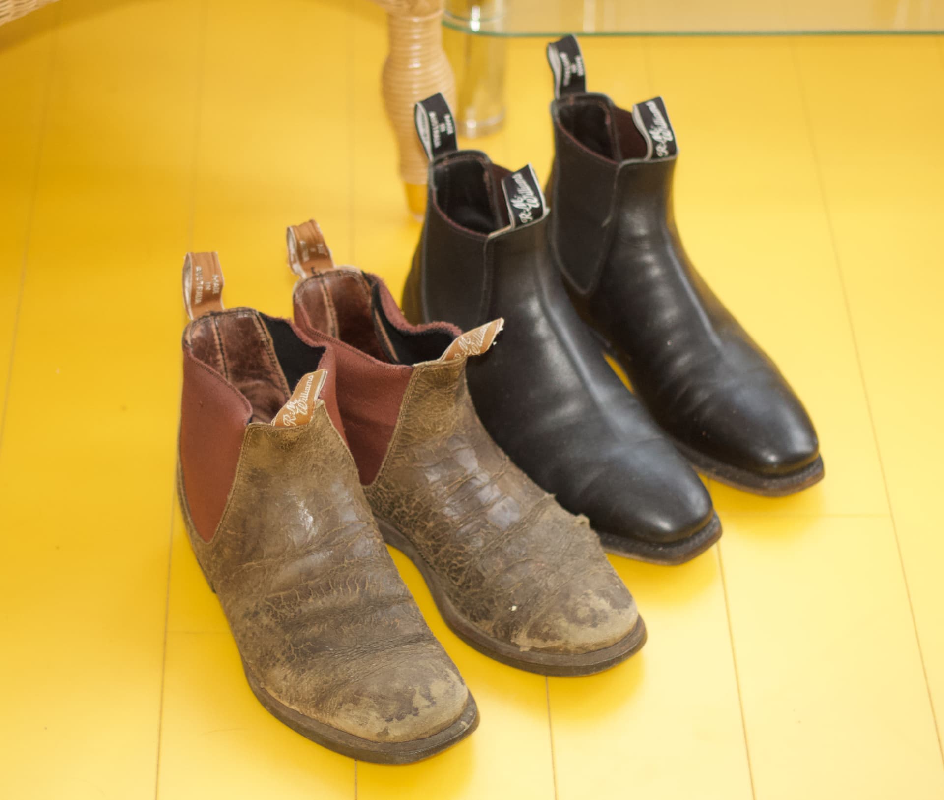 My almost twenty year old R M Williams gardeners boots (now retired) and my new “smart” R M Williams pair.
