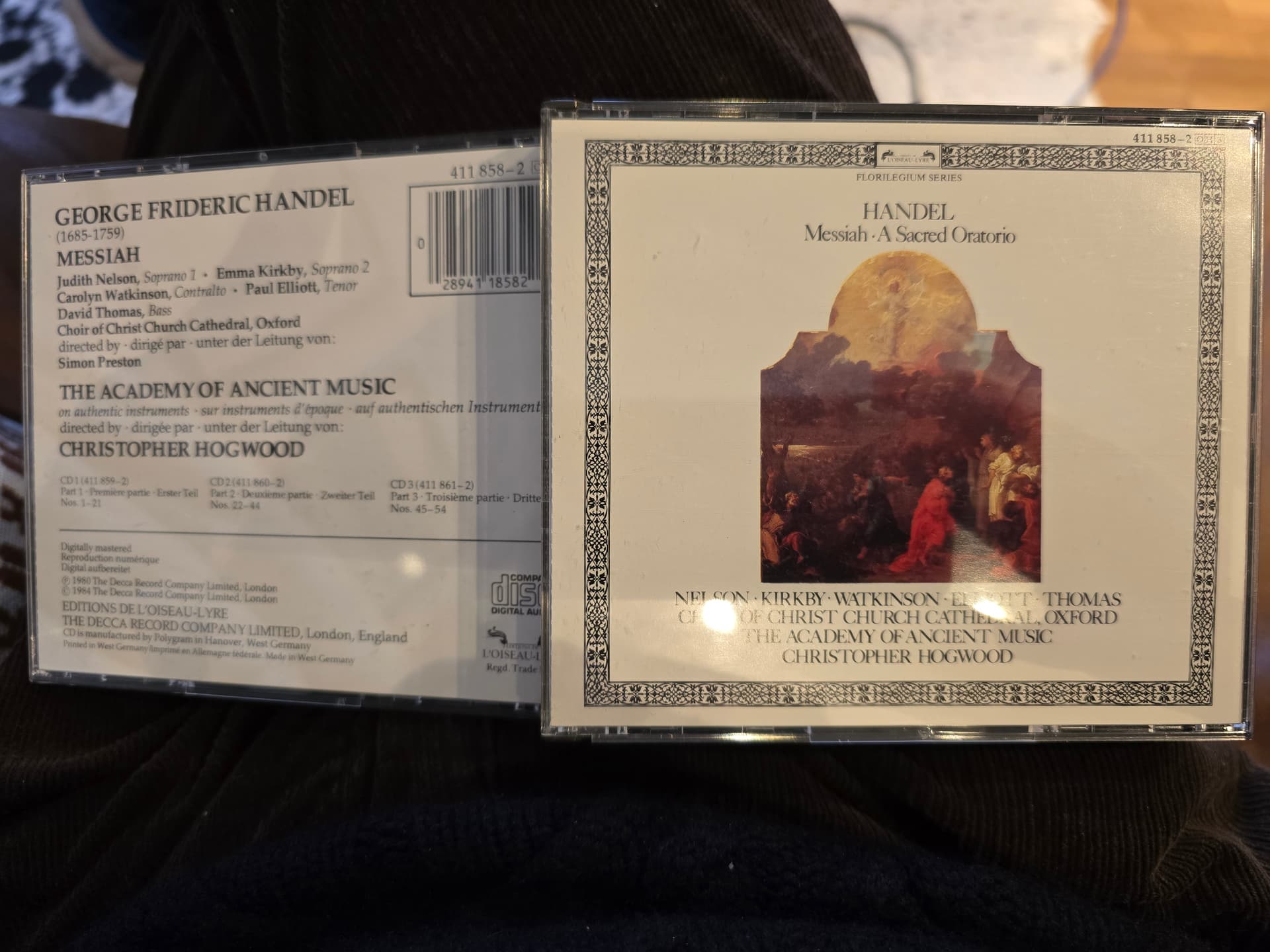 Today I played the Gardiner Messiah in full, followed by Herreweghe’s recording of Bach’s Leipziger Weihnachtskantaten. Happy and music filled holidays to all!