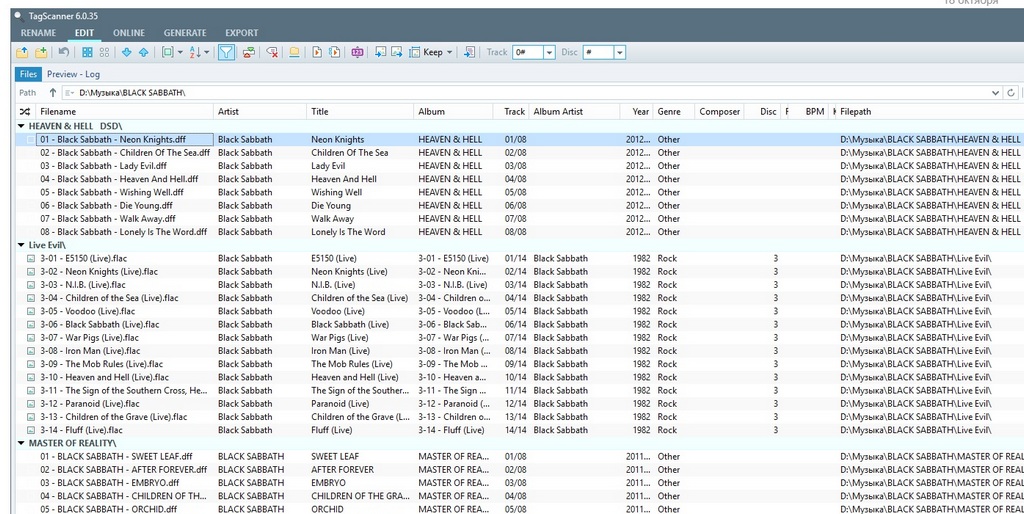 In the Live Evil album, you have track titles where the album title should be, which will cause problems.