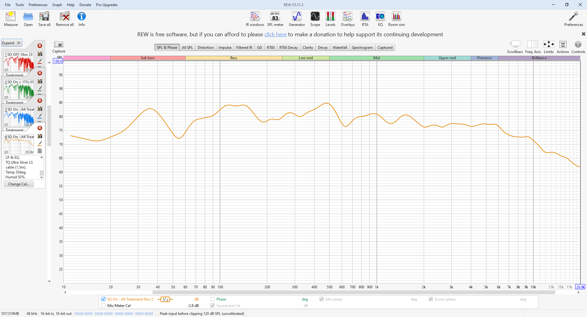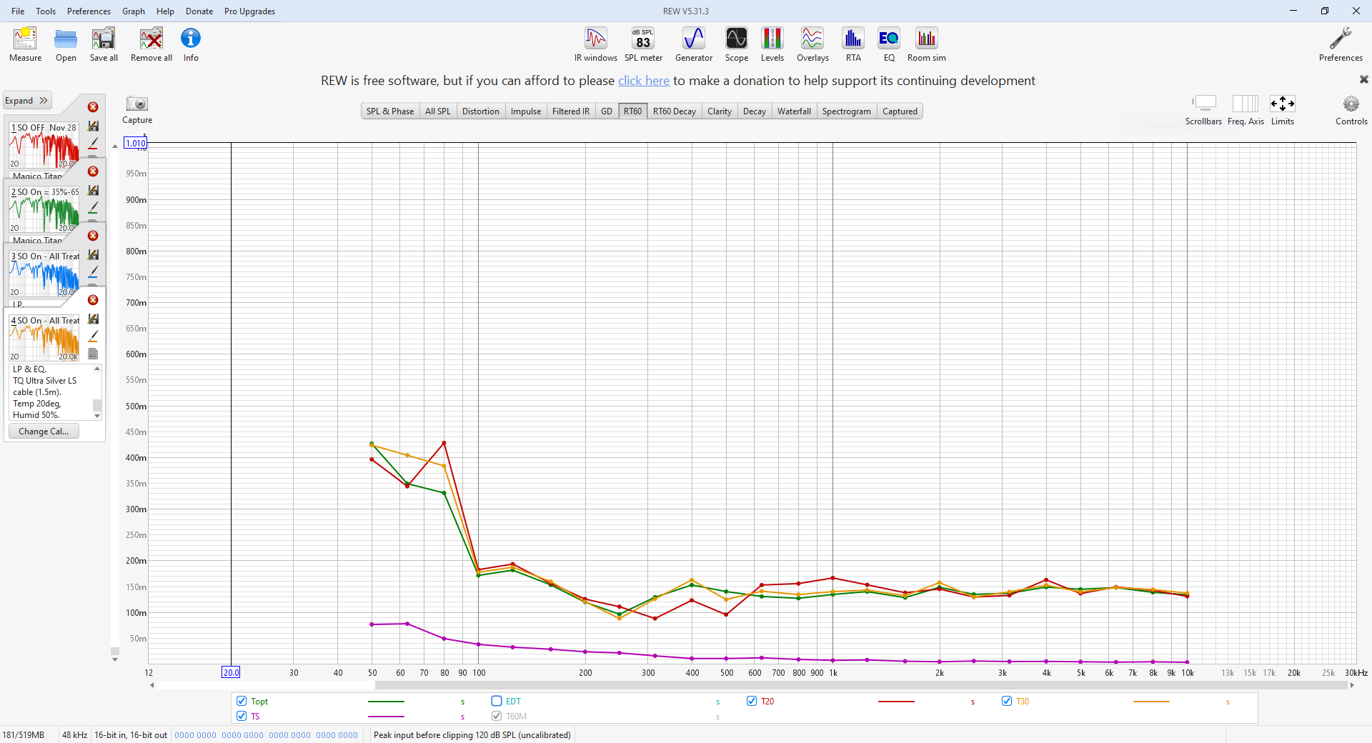 All the following graphs were obtained in my Media Room with a microphone setup as follows.