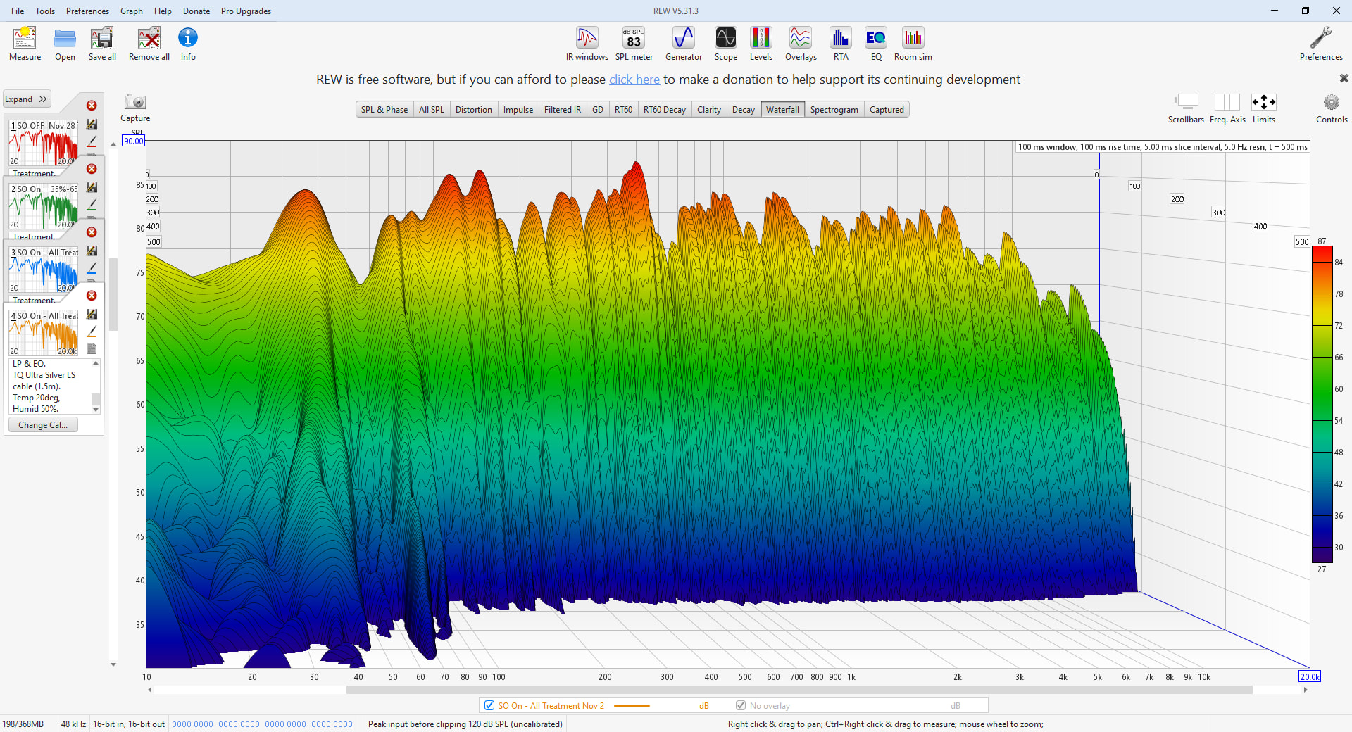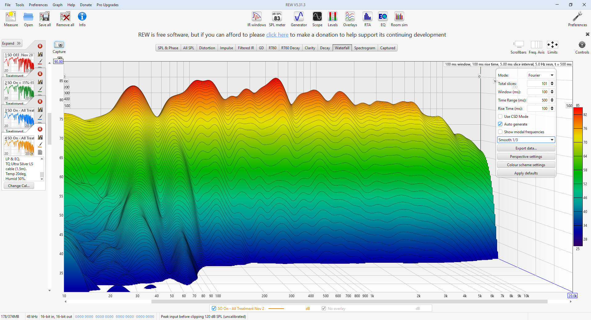 Waterfall Graph at Listening Position (1/48 octave smoothing)