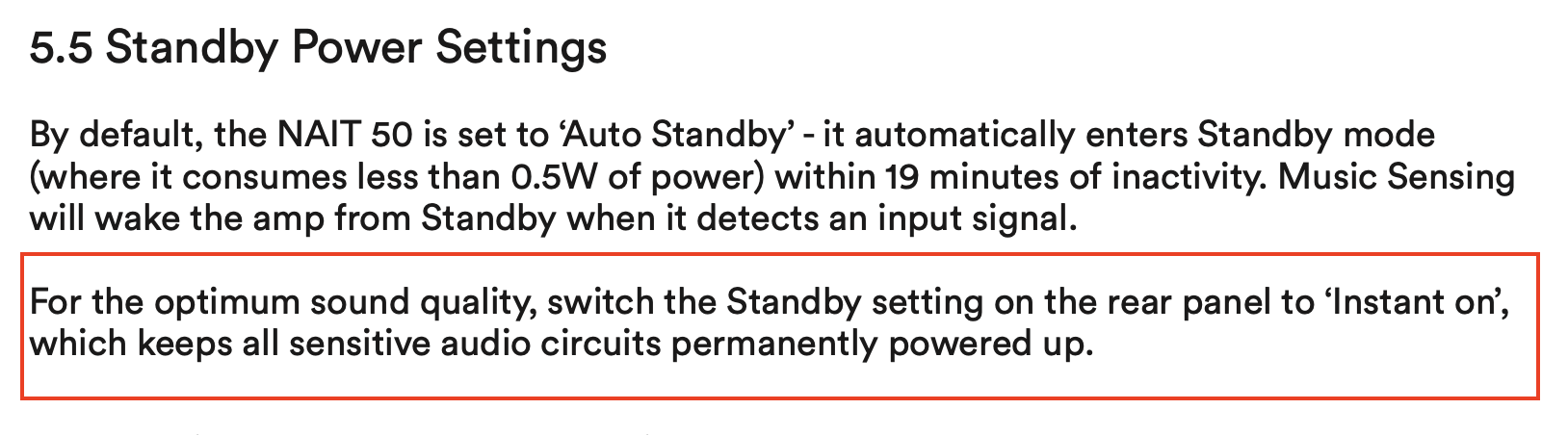 In generel, I don’t care if people choose to have their kit on standby or not, Nait 50 or anything else where possible. I just express my own scenario and what I choose to do.
