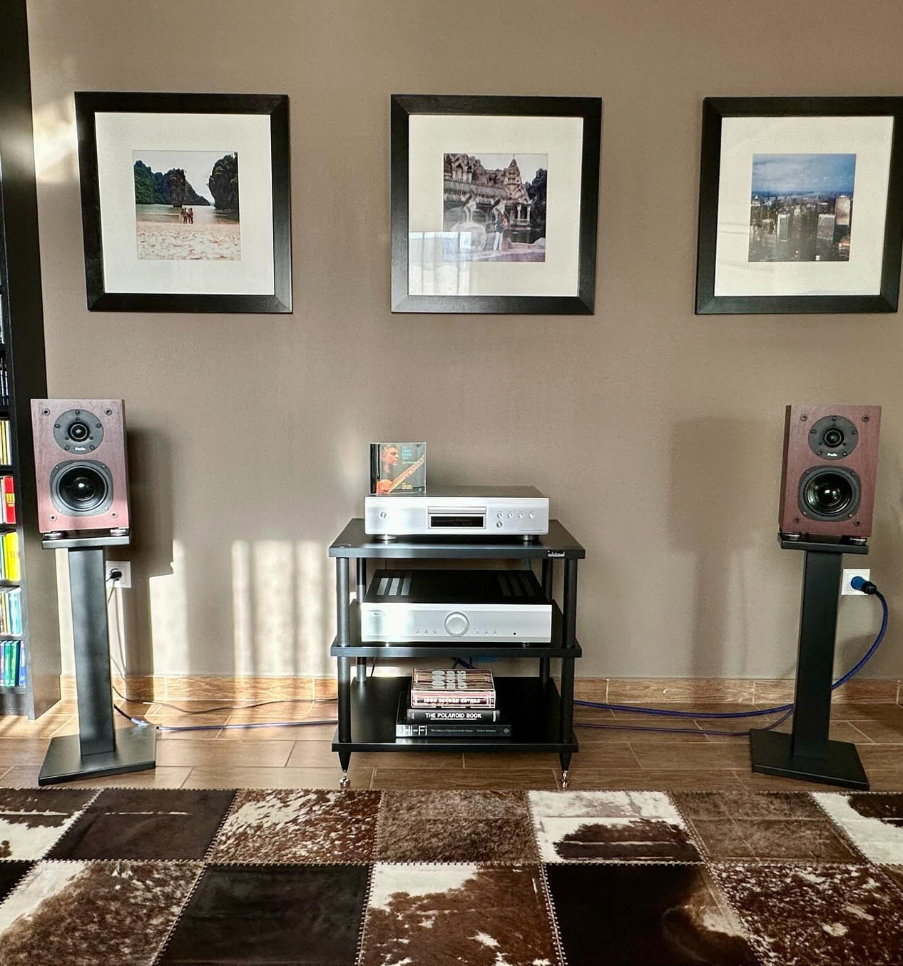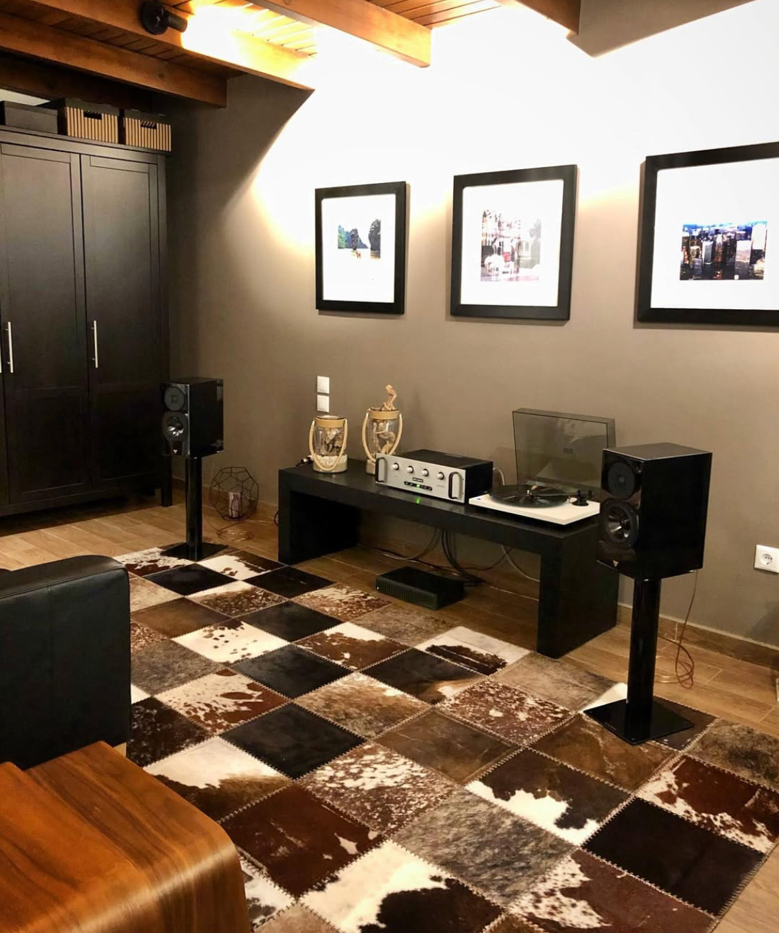 Example no4, in the following picture you see a small Audiovector QR1SE with a front slot port, mind you the size of this speaker is comparable to the Vienna, again 30cm from the wall and no issues.