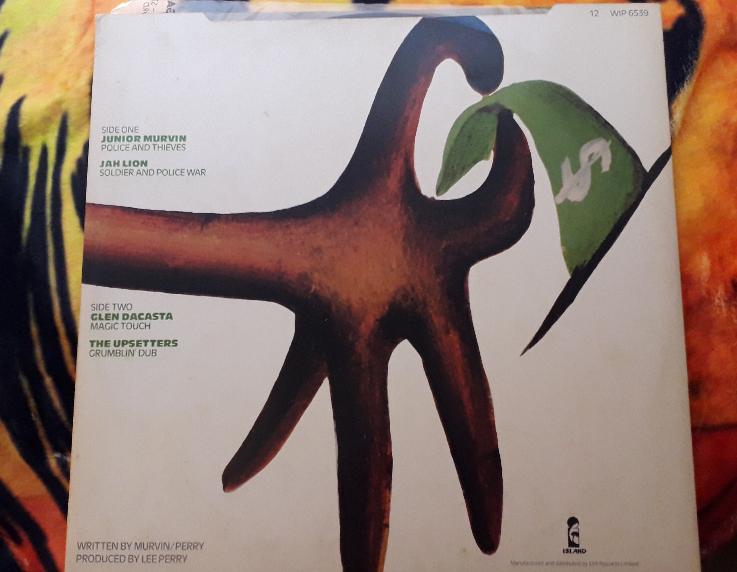 If asked to pick my favourite L£P, an almost impossible task, push come to shove I would select the original 12" of Police & Thieves. 4 cuts segued togethor, Junior Murvin vocal, Jah Lions toasting cut, Glen Dacasta’s sax led instrumental and the brilliant Upsetters Grumblin’ Dub