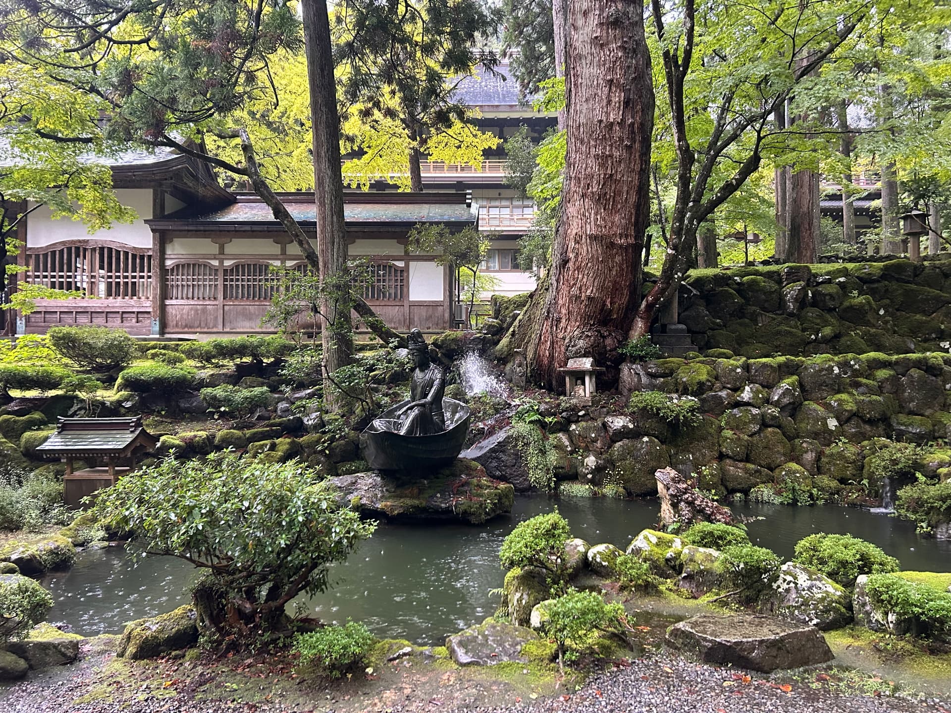 After the full on experience of Tokyo and then Osaka (via Kamakura) yesterday we went to stay at a Riyokan next to a Buddhist monastery, Eiheiji, in the mountains outside of Fukui. This is the Riyokan