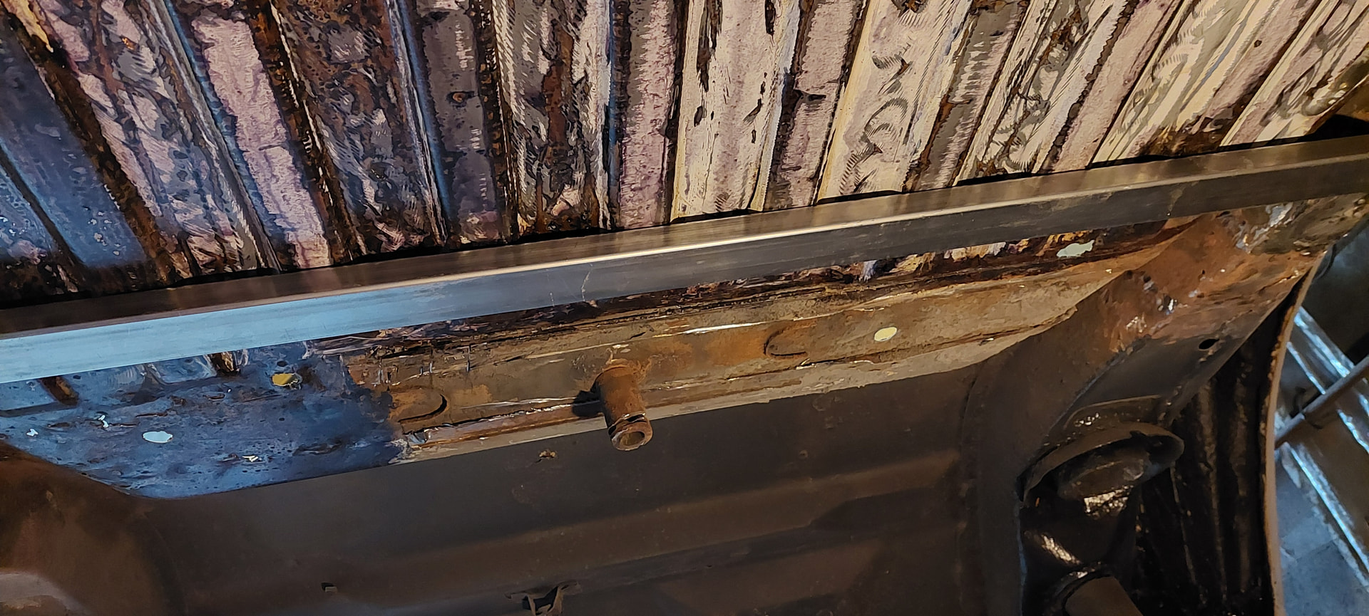 After removing the rear crossmember I needed to brace the floor so that a fat old bloke can get in the boot to do some welding. It’s just been tacked at the ends so can be removed once the new crossmember is in.