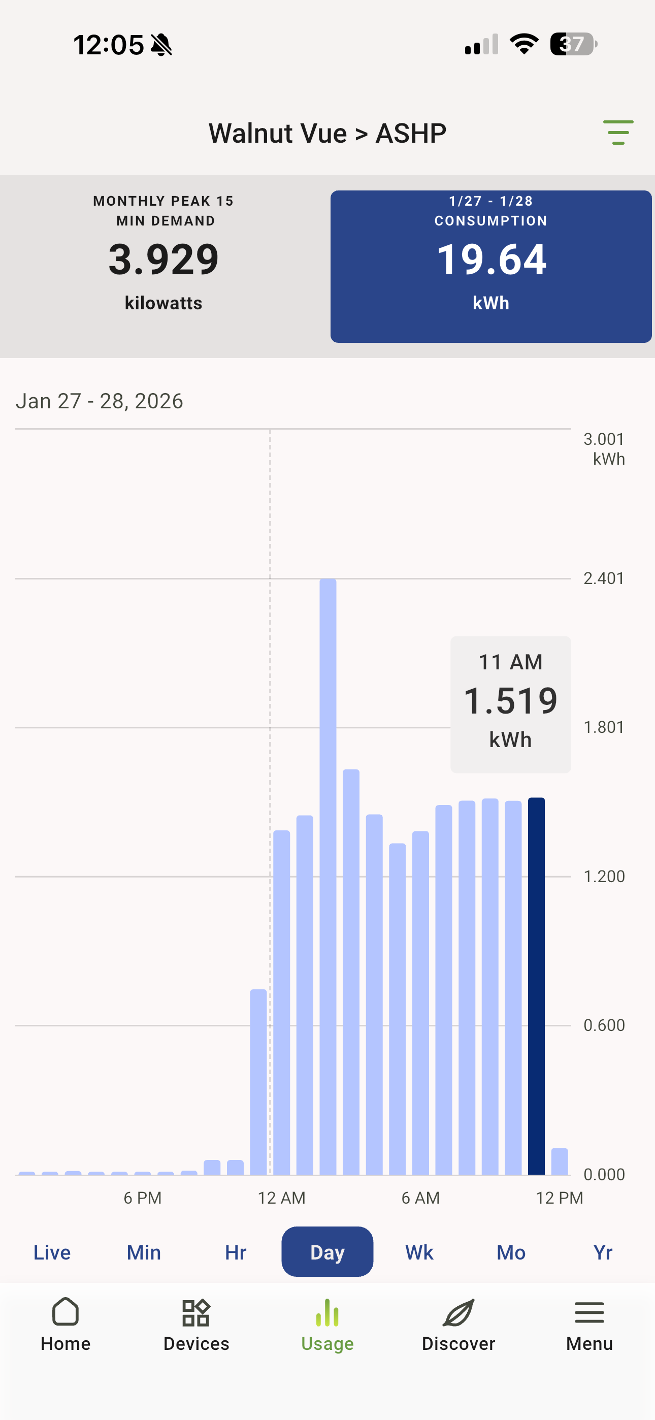 Our system is like a supertanker. Here is Monday 8am till Tuesday 8am. It took all night running until 10am to raise the temperature enough to last until 11:30pm when it came on again. This way we wake up to warmth and can deal with the gradual drop in temperature without needing more heat. If it is colder outside I run it beyond 10am.