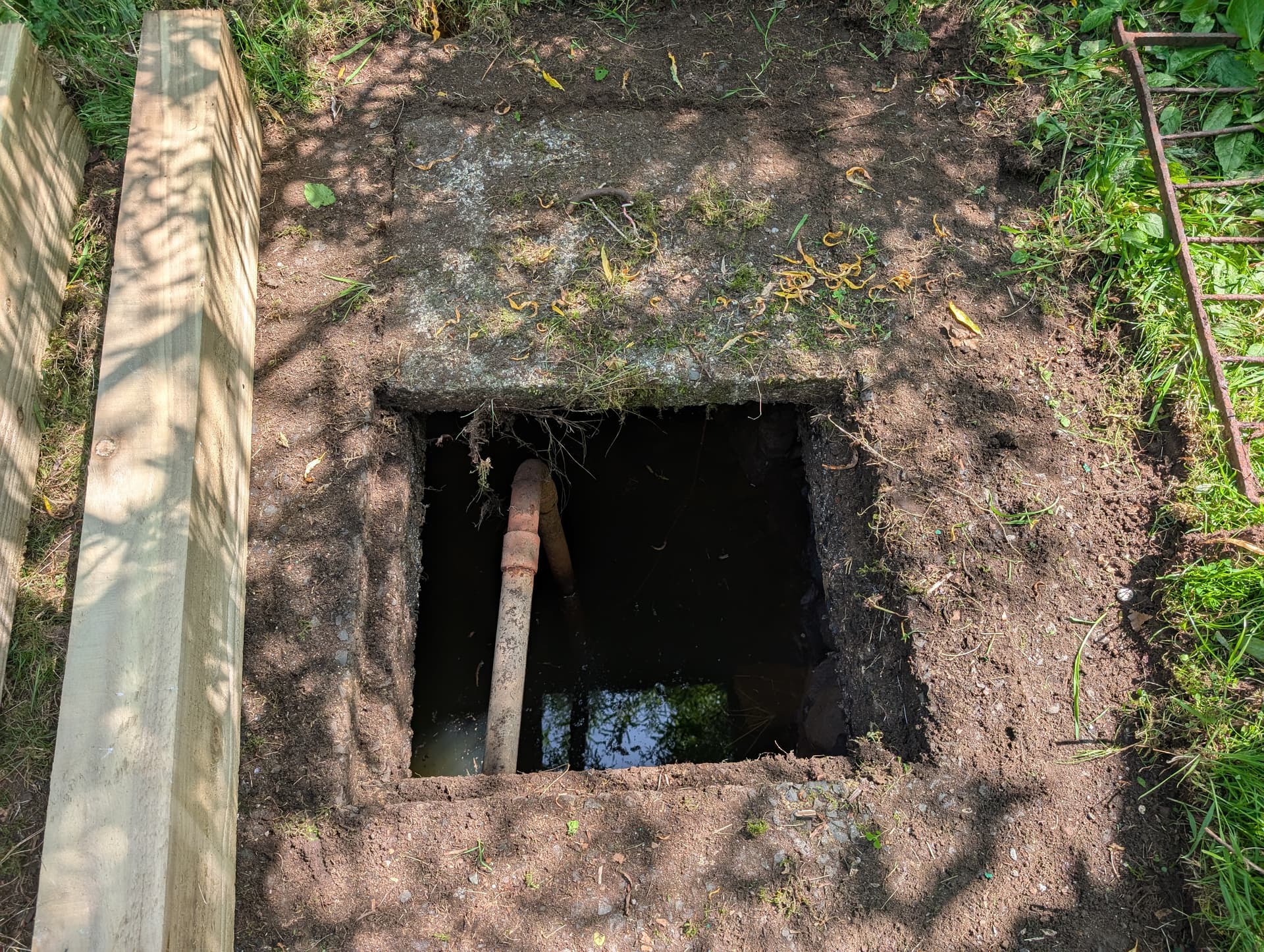 There’s an old well in our “orchard”, capped with two reinforced concrete slabs, one of which was broken, disintegrating and in need of replacement.