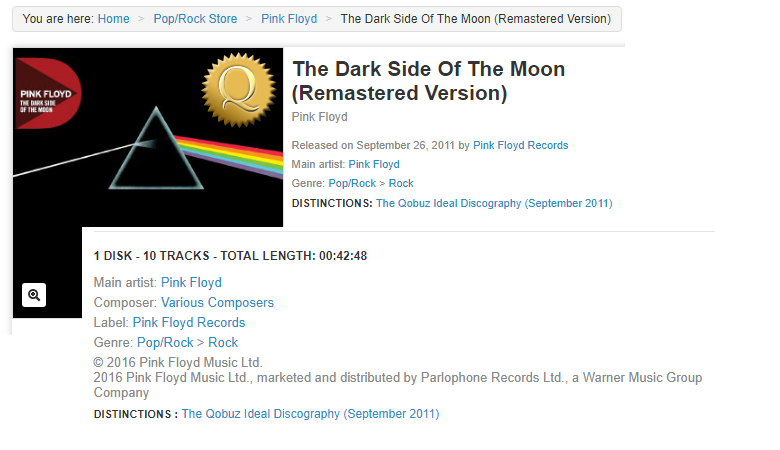Don’t get confused with the 2011 bit, thats when it was remastered for inclusion in another big Pink Floyd project. The copy that I have from Qobuz was says its 2011 in the title, then in the credits it shows Pink Floyd Records 2016. I believe the “2016 Pink Floyd Records” part is actually a Copy Right legal statement..