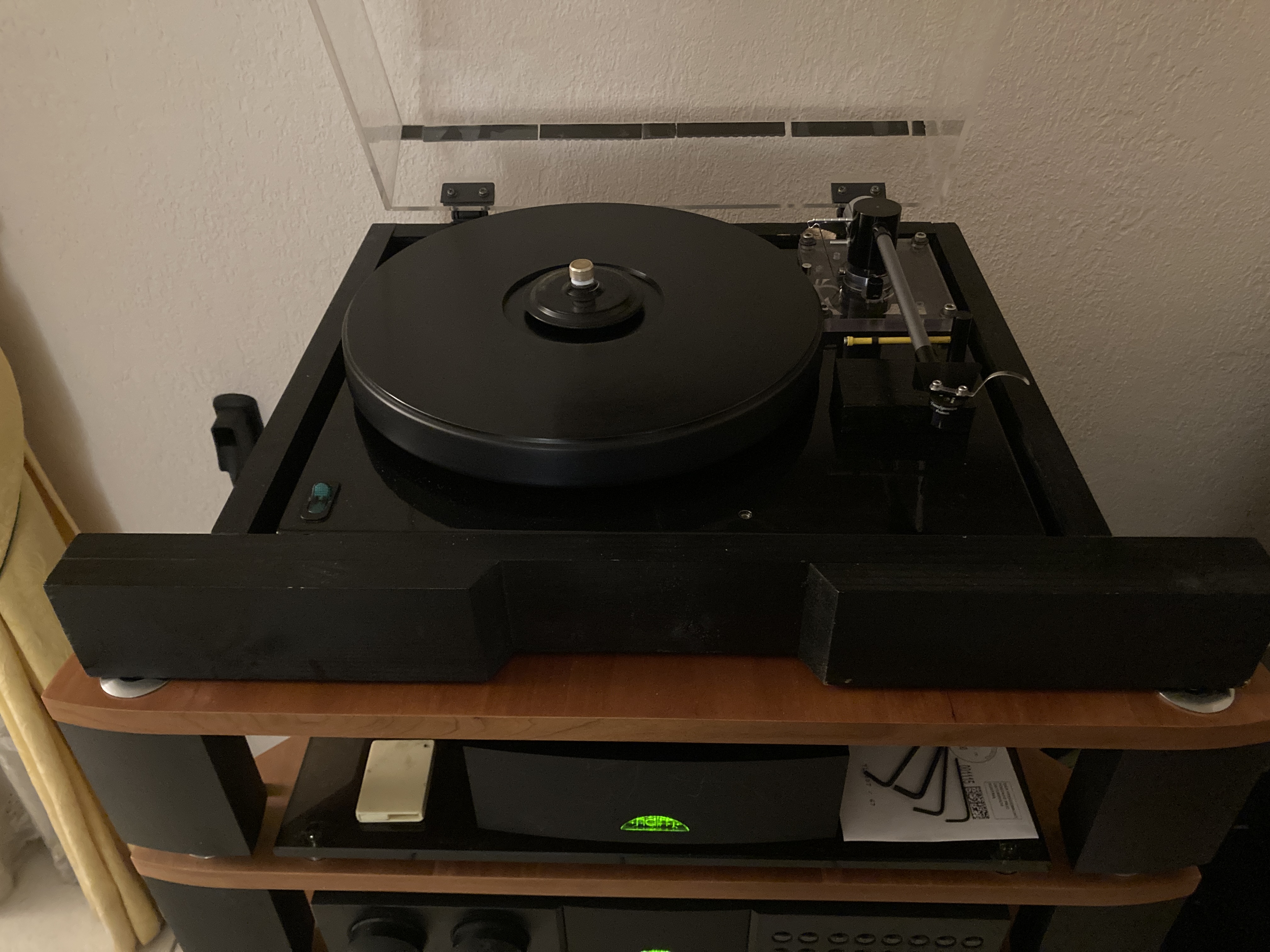 Since getting the Levis feet on the TT I just raise the lid as this is how I have set it up. The Levis feet will move wit lid down and alter the level stance with the weight distribution different. I could set the Gyro up without the lid and remove it each playing session. I have tried it both with just the lid up and removed and cannot detect any change in sound quality so I can’t see the point.