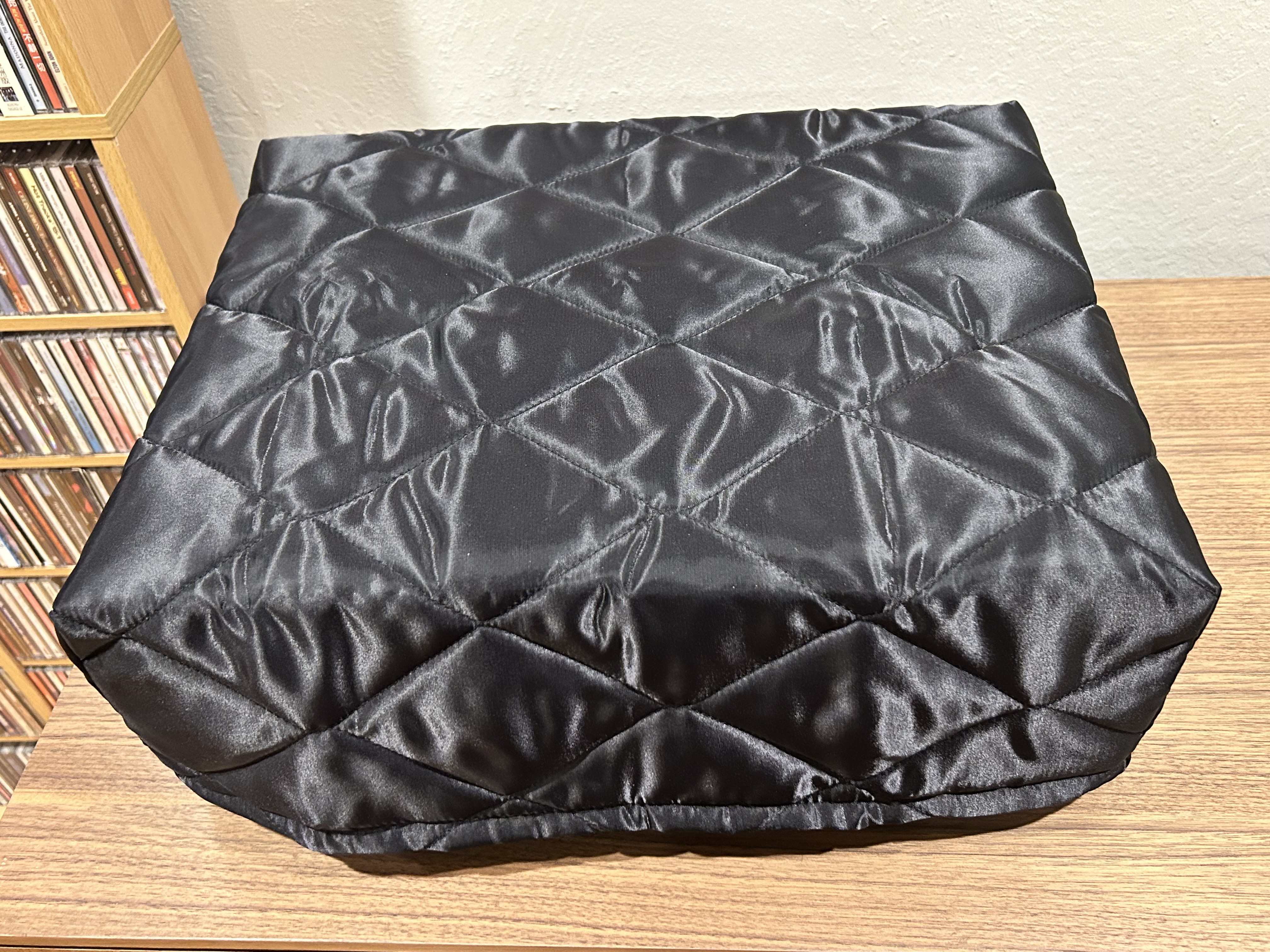 Oracle of Canada said that it’s better without the cover. I prefer the sound of my LP 12 without the cover. So I cleaned the lid, avoiding swirl marks and packed it away. To shield the table from dust while not in use, I just use a light piece of fabric.